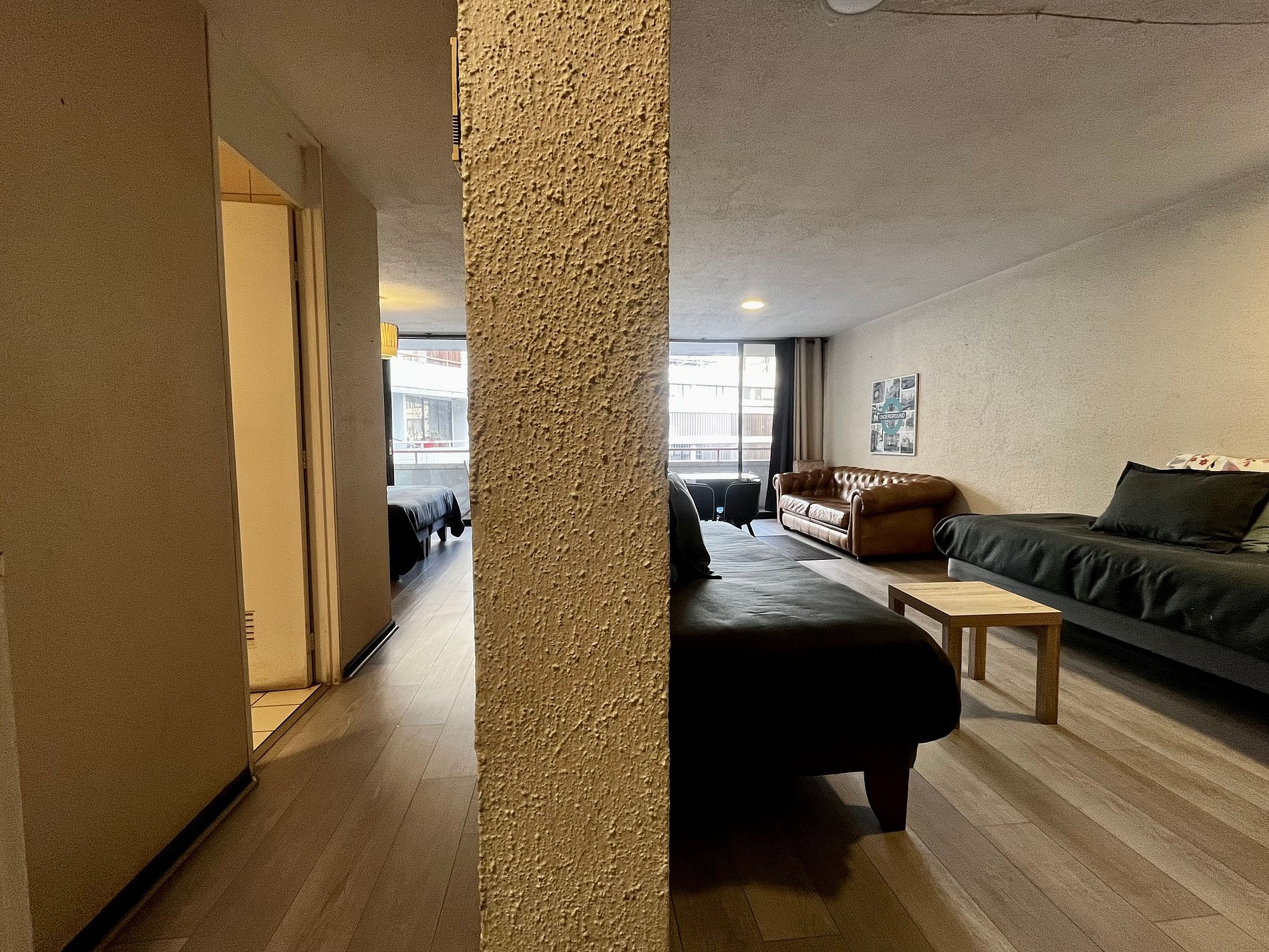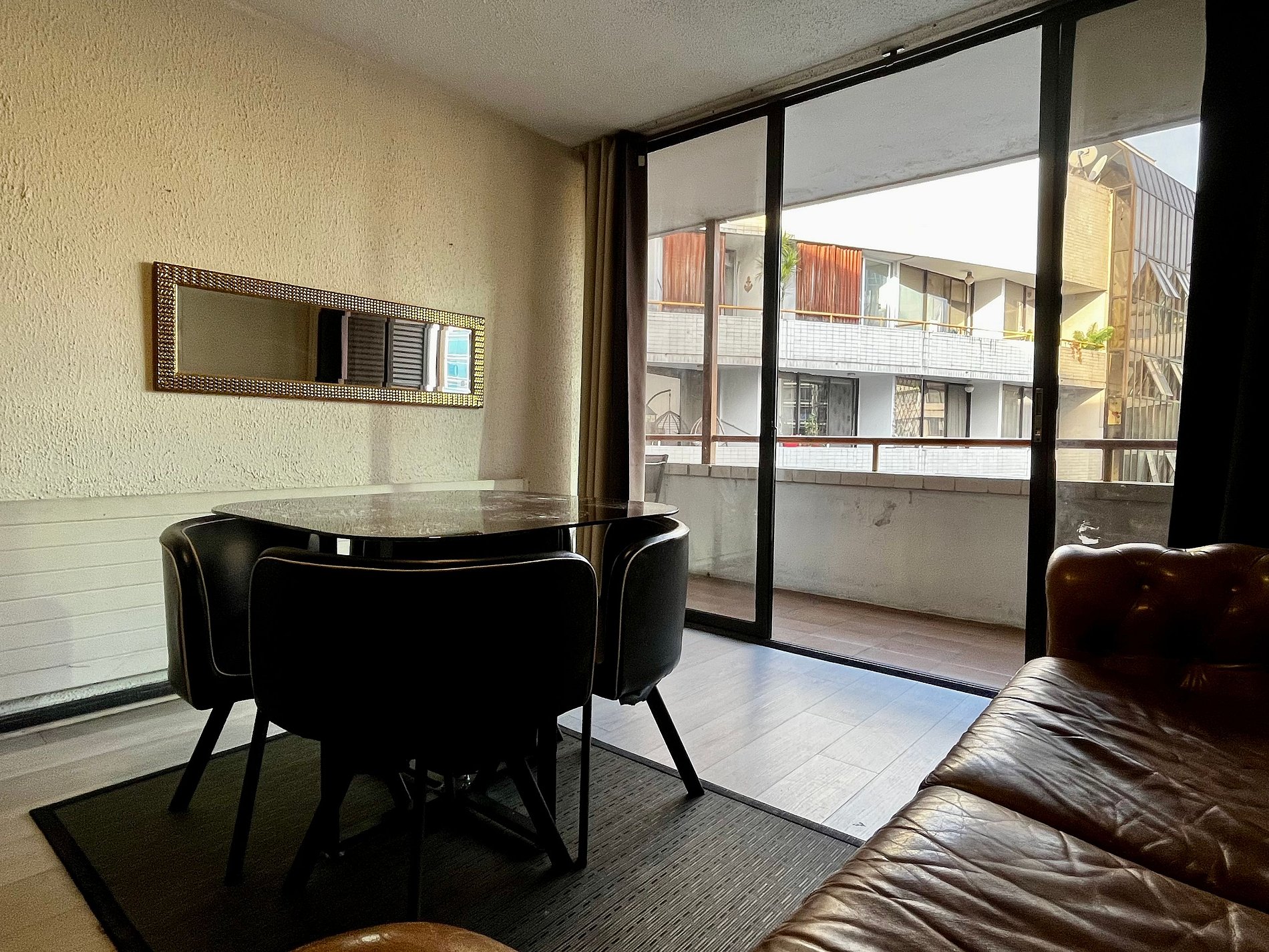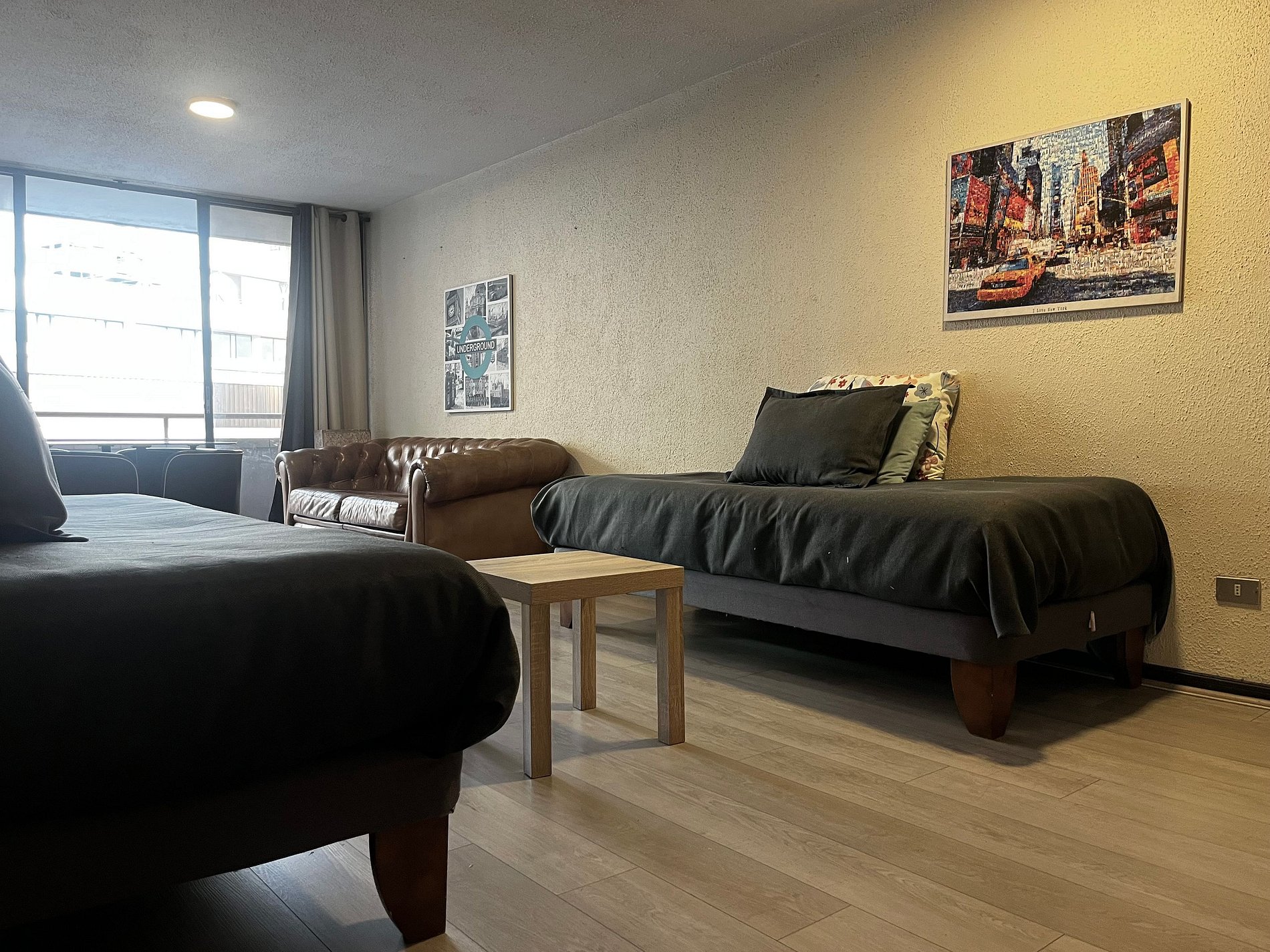 Muy buena ubicación, tiene cercanía a todo y el metro a solo una cuadra, todo perfecto. El ventanal enorme es increíble, pediría solamente elevar el televisor en el dormitorio y acercar a la mesa comedor el televisor del living