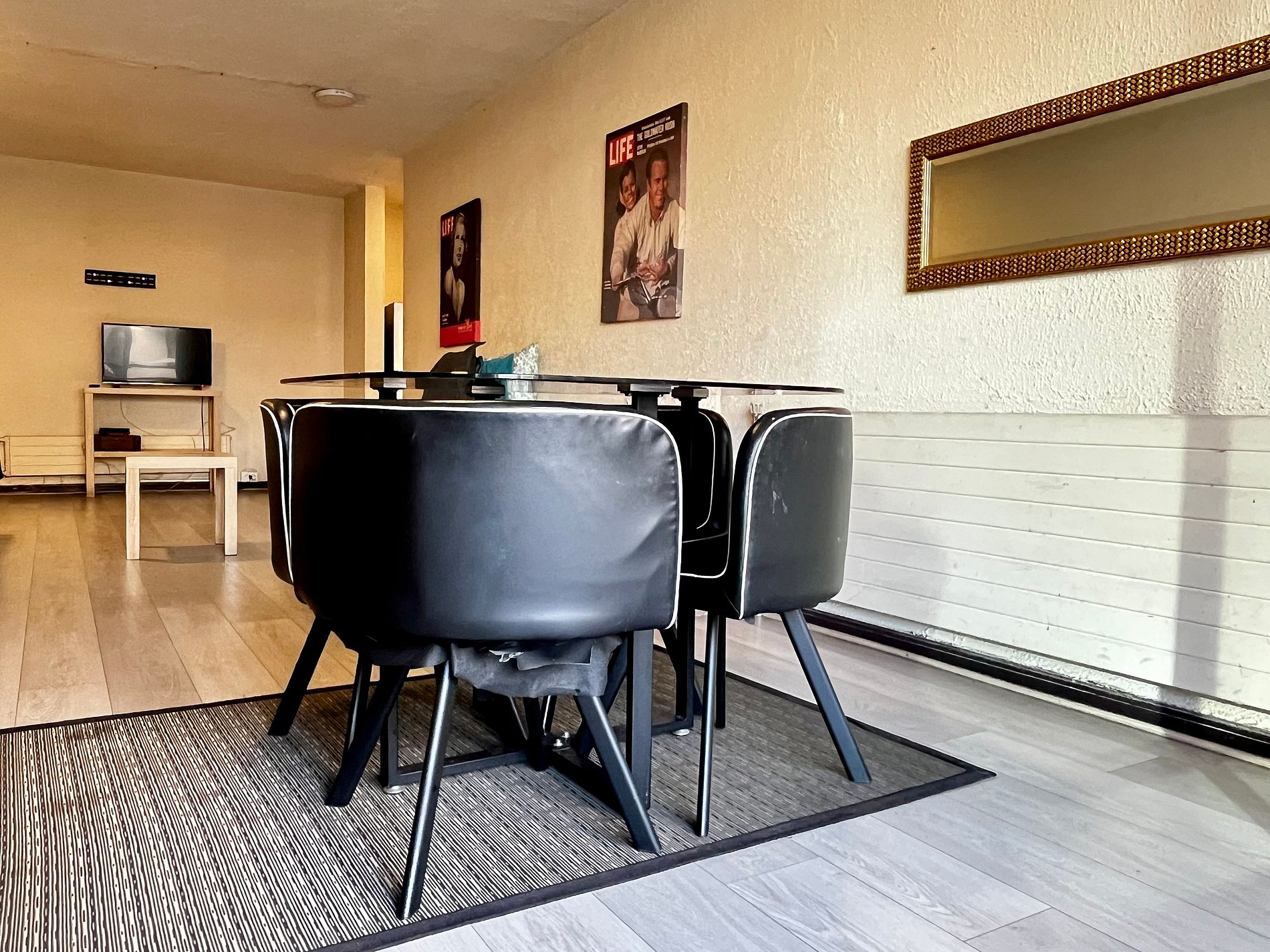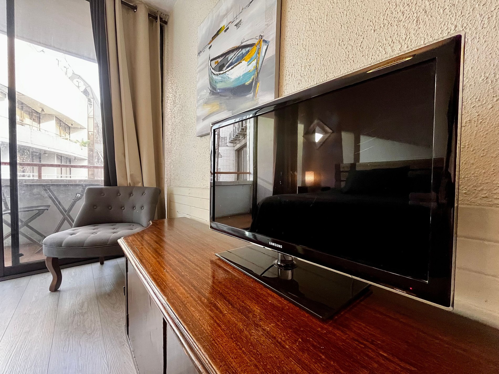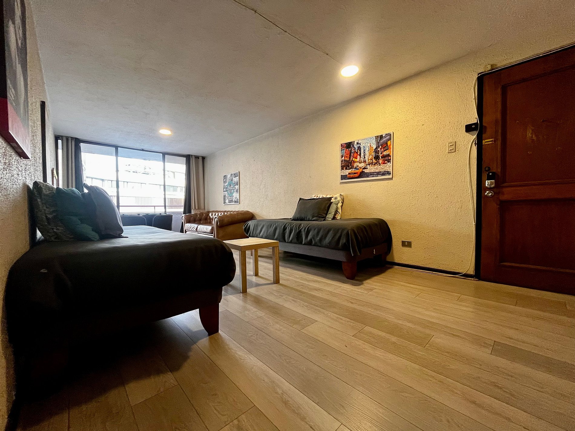 Muy buena ubicación, tiene cercanía a todo y el metro a solo una cuadra, todo perfecto. El ventanal enorme es increíble, pediría solamente elevar el televisor en el dormitorio y acercar a la mesa comedor el televisor del living