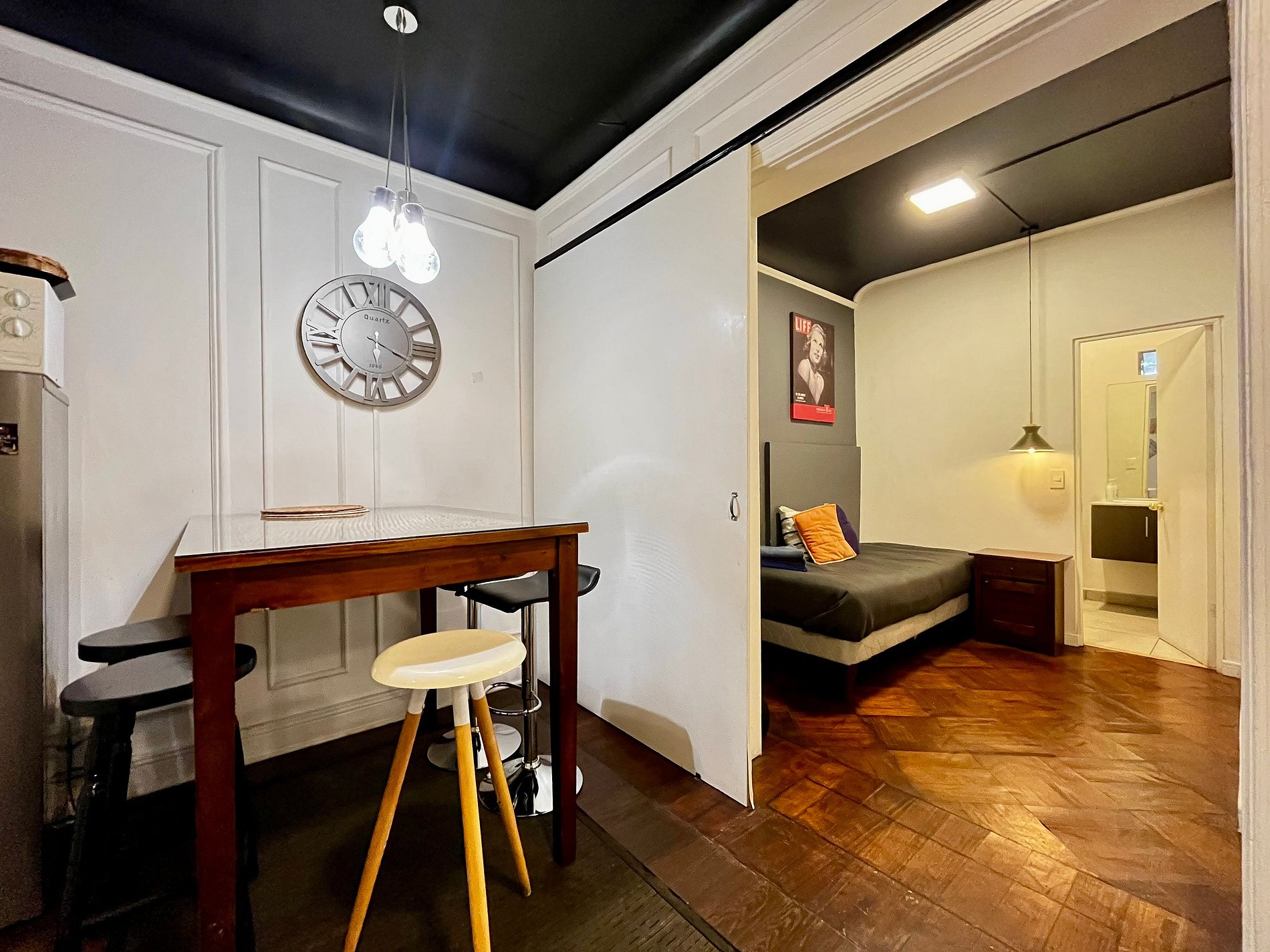 PAID PARKING 4 BLOCKS AWAY, SUBJECT TO AVAILABILITY Calle Huelen, Providencia. 2 bedrooms, one bedroom with a king-size bed, second bedroom with two single beds, hallway next to the master bedroom with a single bed, a bathroom with a shower, equipped kitchen. Free WiFi in the apartment. Cable TV, air conditioning and heating in the bedroom, towels, iron, hair dryer and bed linen included.