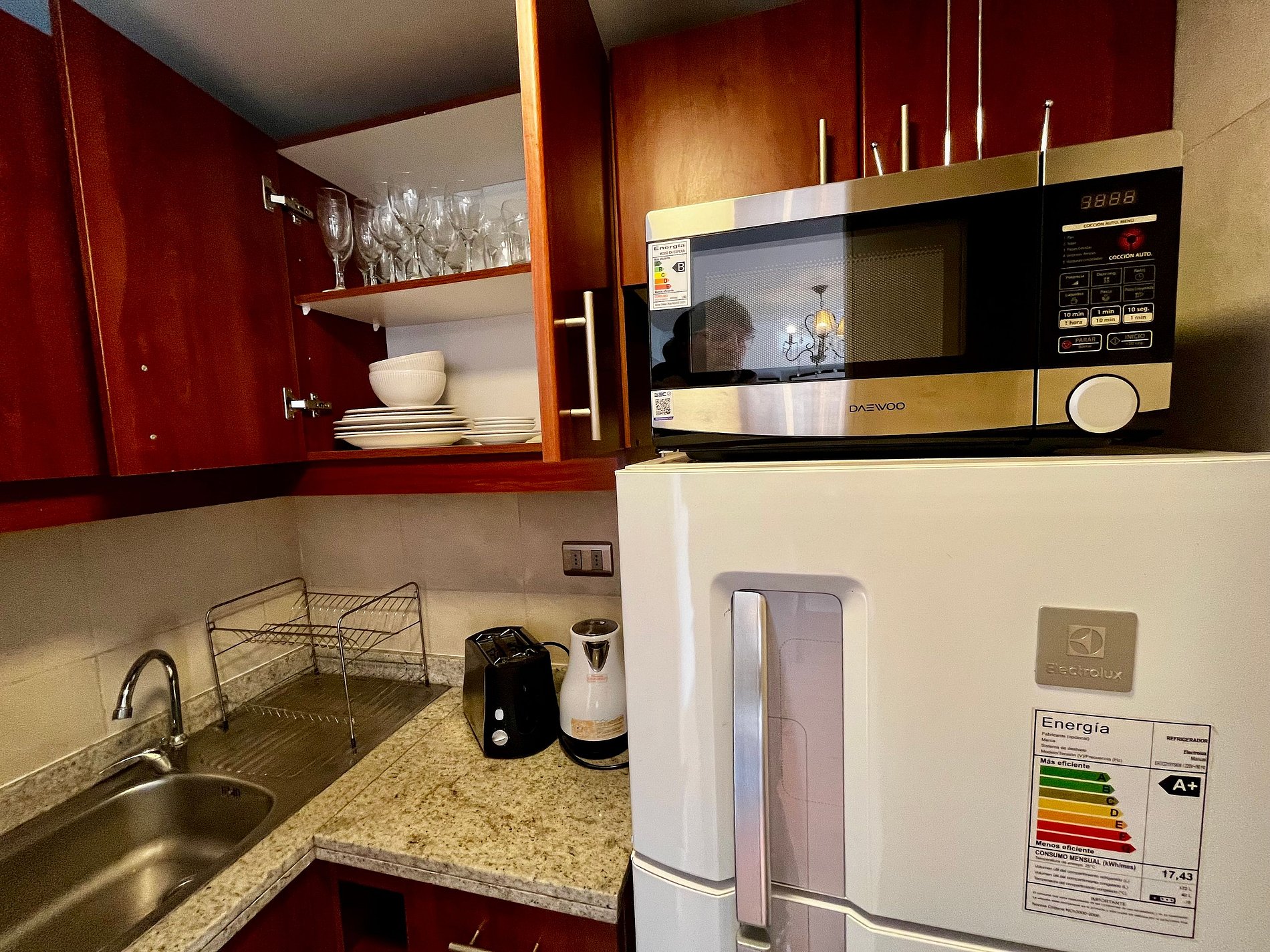 PAID PARKING IN THE SAME BUILDING, SUBJECT TO AVAILABILITY Almirante Pastene with Providencia. 2 spaces, 1 bedroom with a double bed, a single bed in the living room, 1 balcony, a bathroom with a shower in a bathtub, a small but fully equipped kitchen. Free WiFi in the apartment.. Fan, electric stove, towels, iron, hair dryer and bed linen included.
