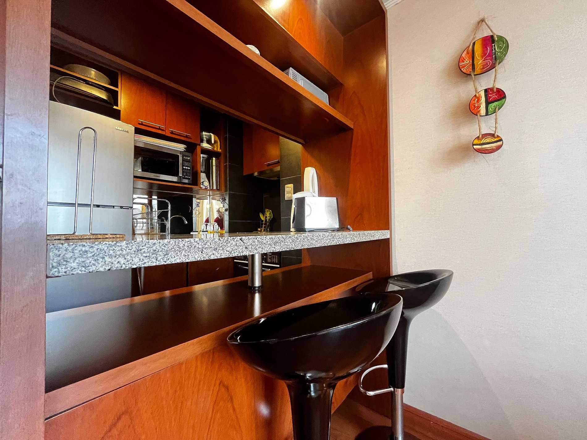 The Manuel Montt neighborhood, which is crossed by Providencia, Manuel Montt and Antonio Varas avenues, is characterized by the variety of restaurants and cafes. Lider Supermarket in Nueva Providencia cross Manuel Montt. Nescafe de las Artes Theater . The Costanera Avenue with its park is just 2 blocks from the avenue and 4 from the apartment. Within a radius of 2 km there are Costanera Shopping Center, Patio Bellavista, Barrio Lastarria, Cable Car, the Metropolitan Zoo and Half a block away is Providencia Avenue with a shopping area, Manuel Montt metro station (200 meters away), several cafes and restaurants.