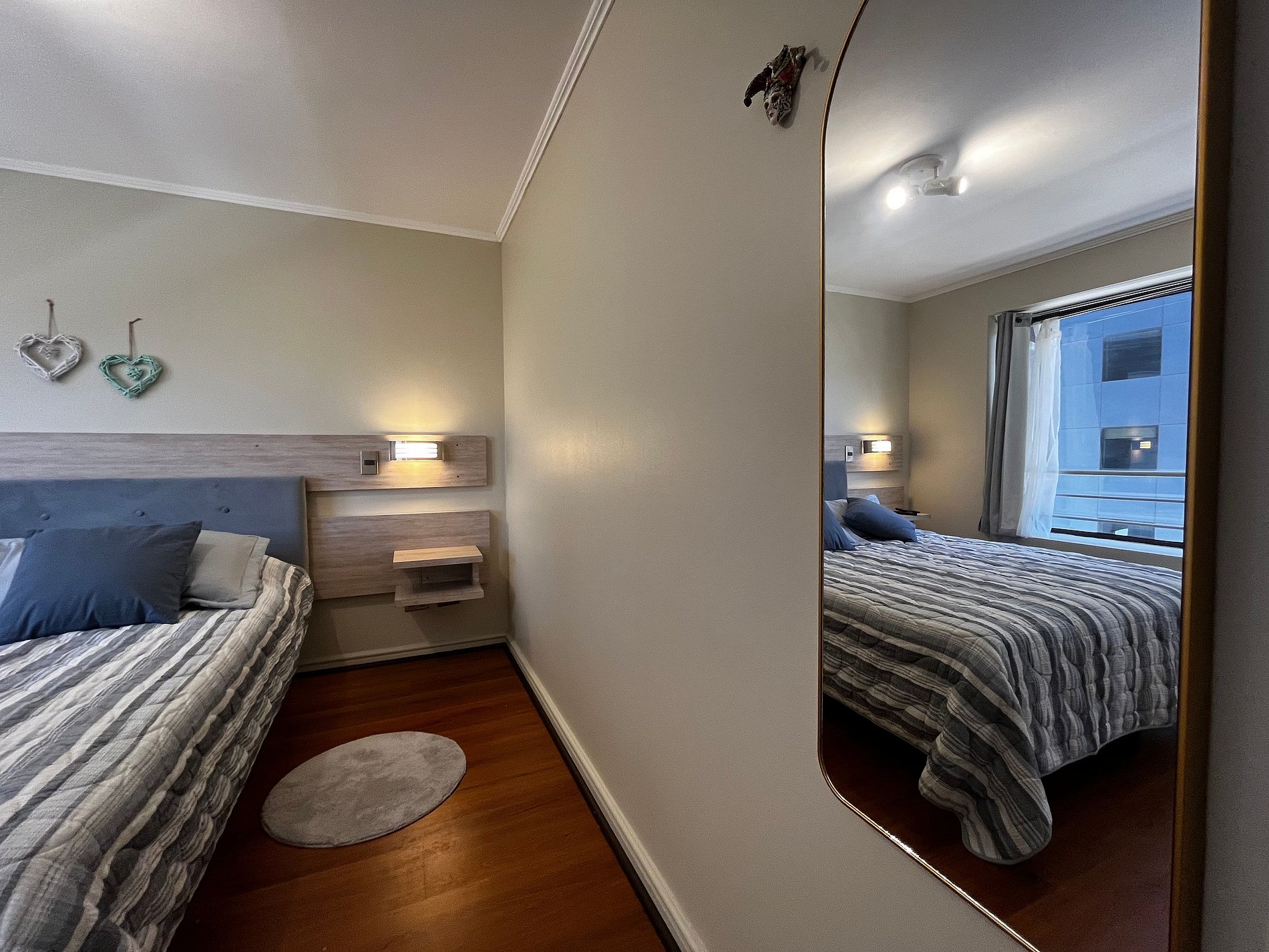 Avenida Pedro de Valdivia esquina Nueva Providencia , 2 ambientes dormitorio con una cama matrimonial, sofa cama doble en el living, cocina pequeña equipada.