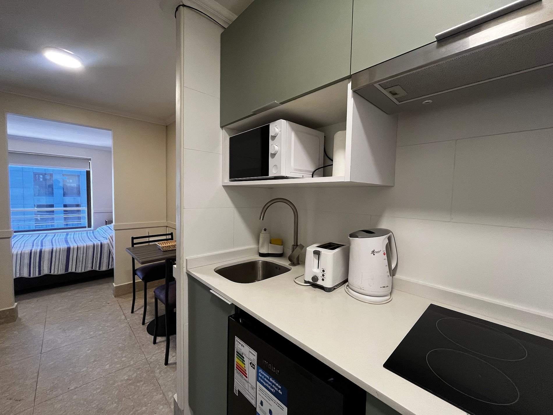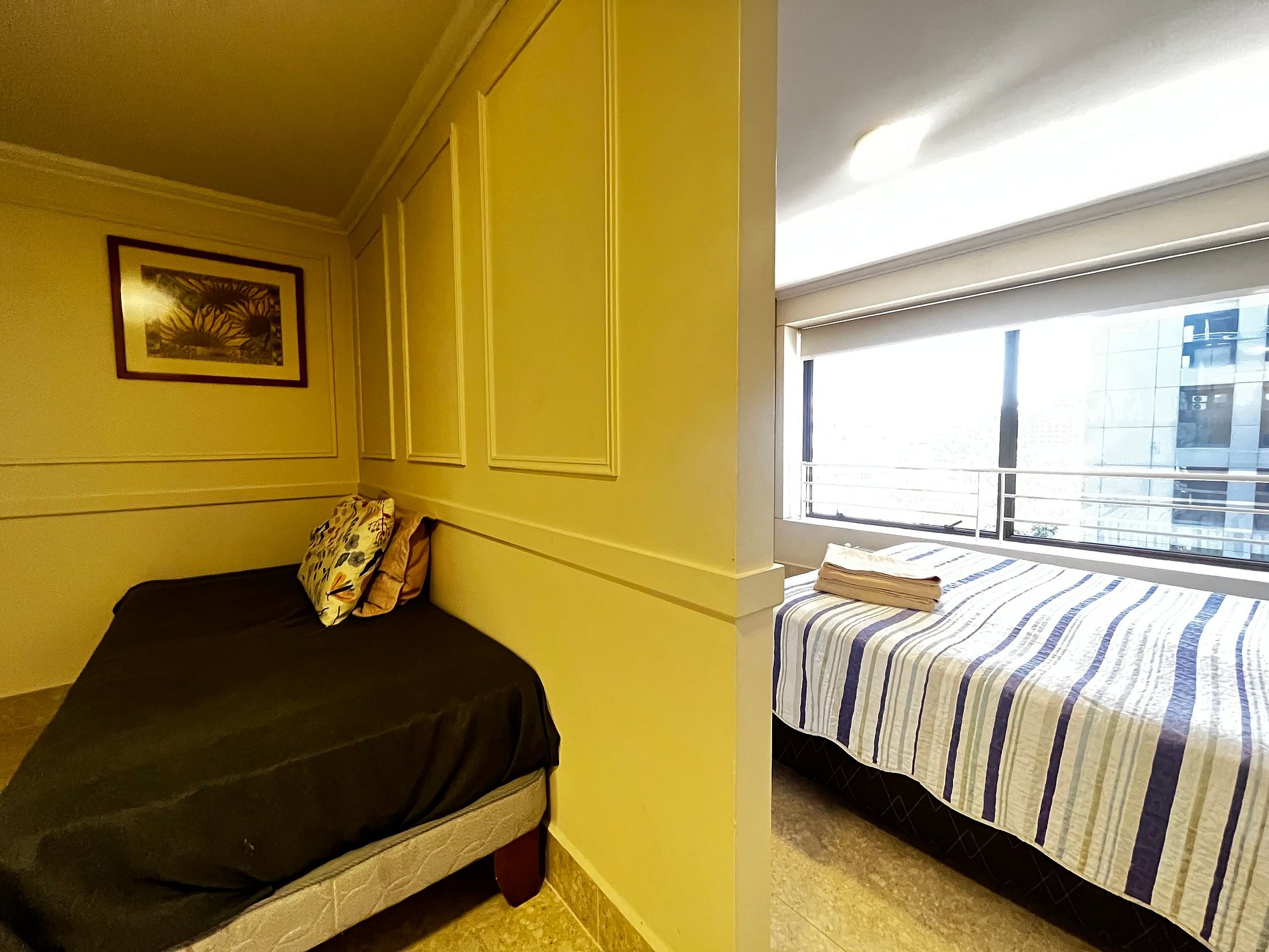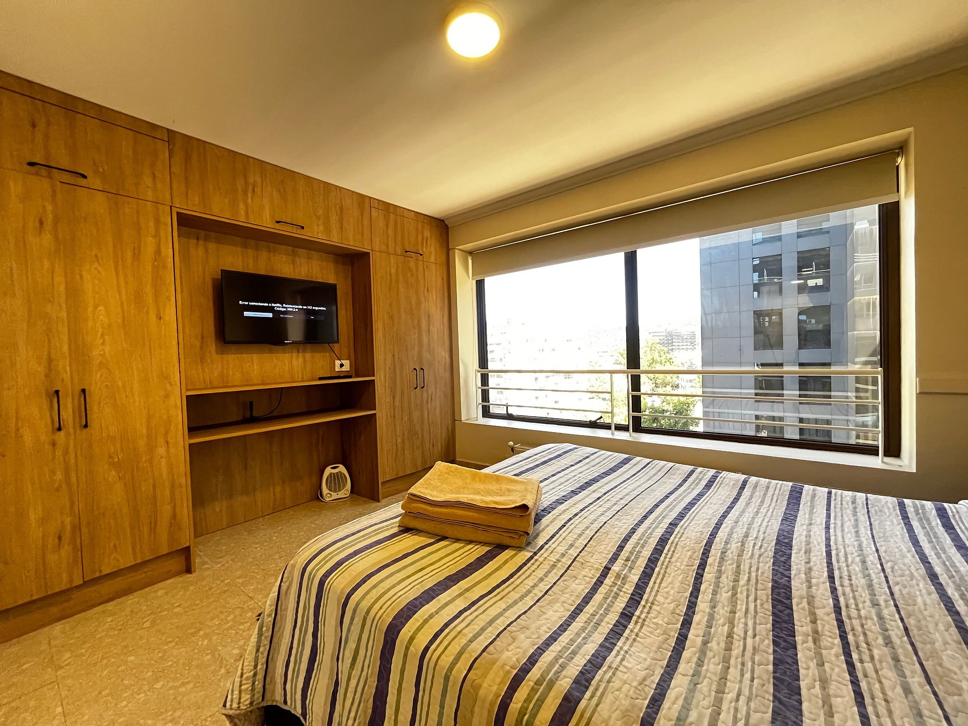 Avenida Pedro de Valdivia esquina Nueva Providencia , 1 dormitorio con una cama matrimonial, sofa cama doble en el living, cocina péqueña equipada (sin horno).
