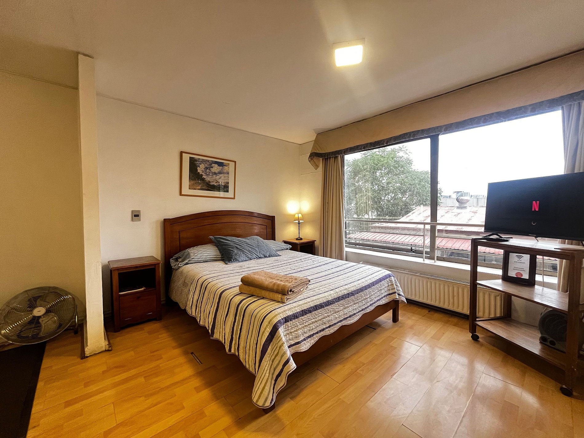 WiFi gratuita en el departamento. Tv . Ventilador, estufa eléctrica, toallas, plancha de ropa, secador de pelo y ropa de cama incluidos. Cuenta con estacionamiento con costo adicional y sujeto a disponibilidad. Está situado en un edificio céntrico en el nivel 6