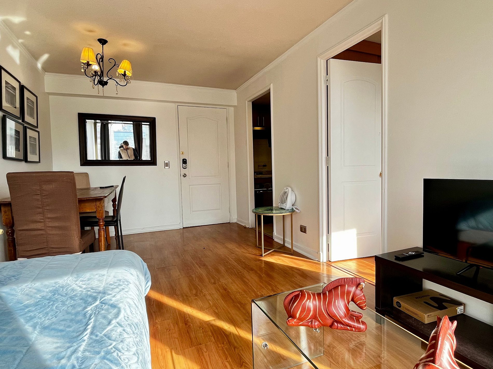 La locación muy buena, a metros de la salida del metro en una zona con muchos negocios alrededor. El departamento limpio, tiene lo basico para el viajero, sin lujo pero correcto. El anfitrión contestó de inmediato y facilitó las instrucciones amablemente. Recomendable, volvería a contratarlo.