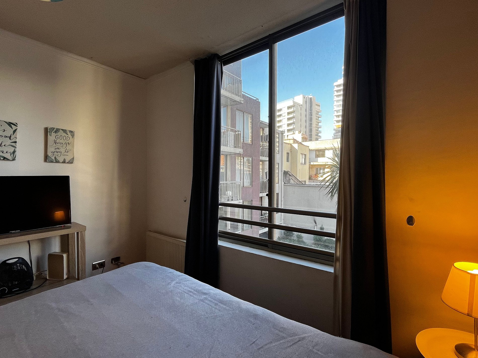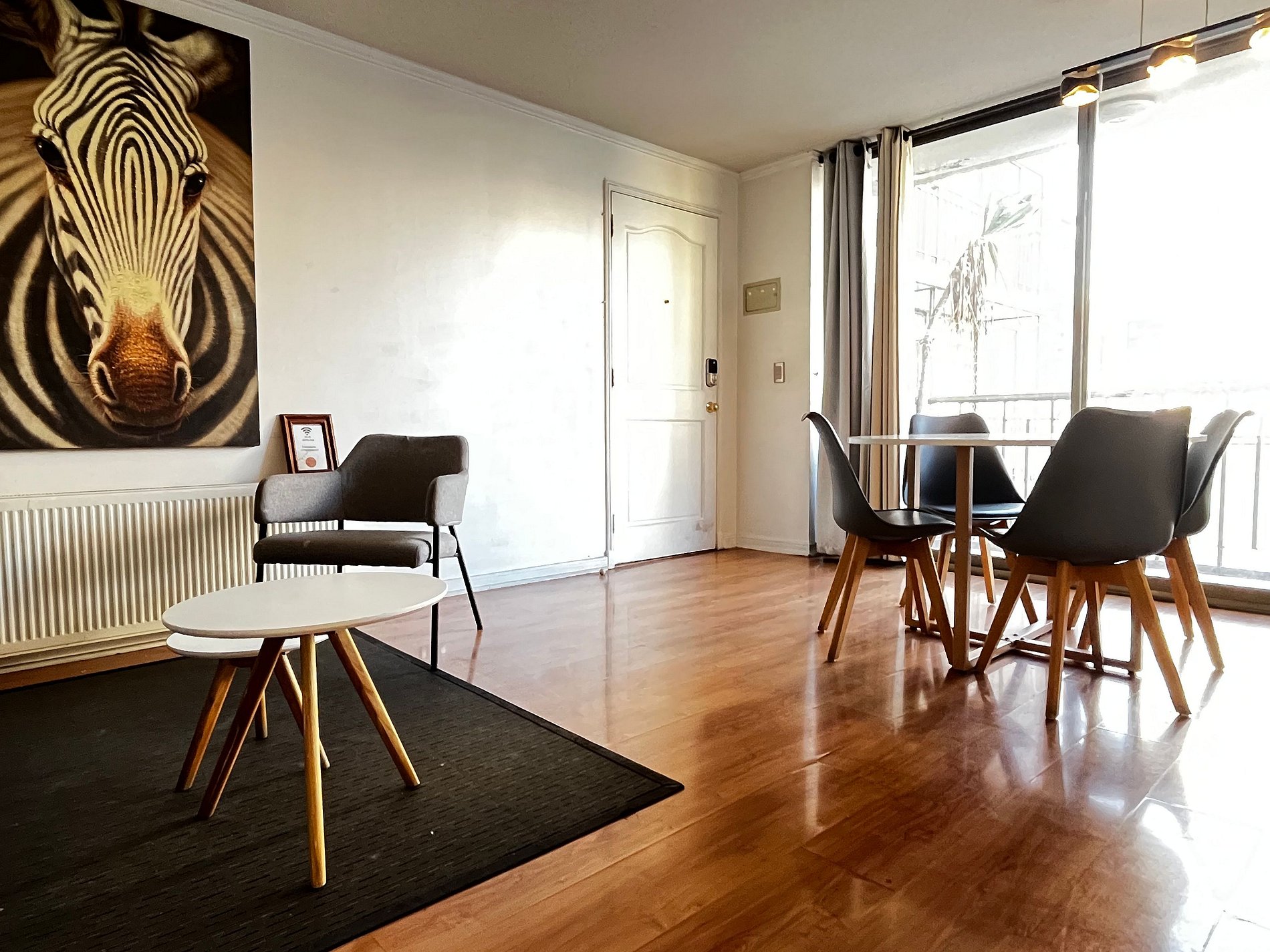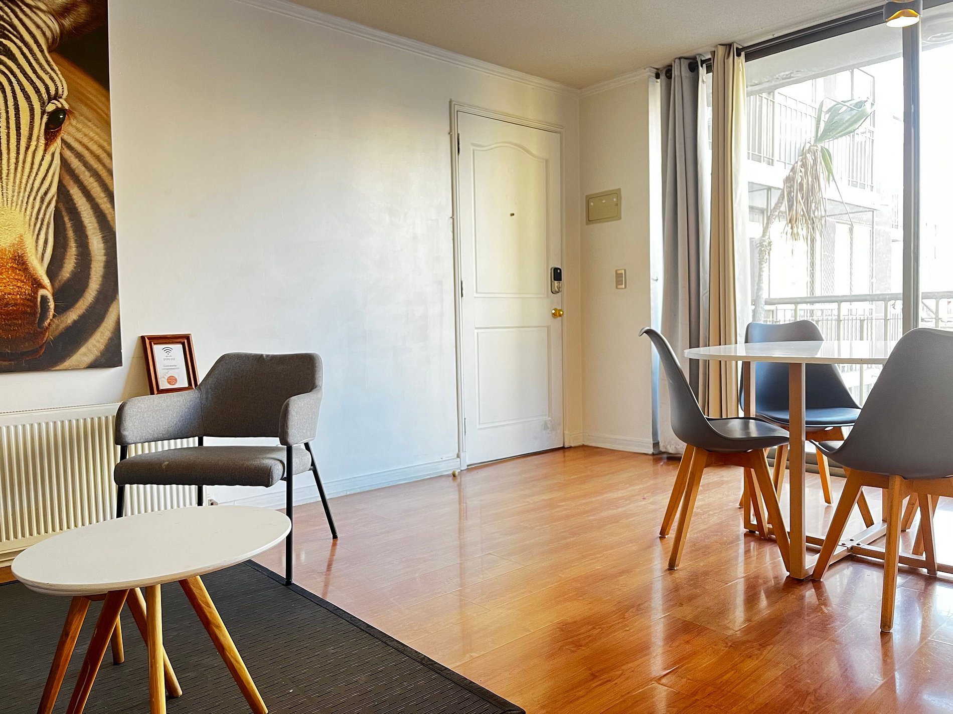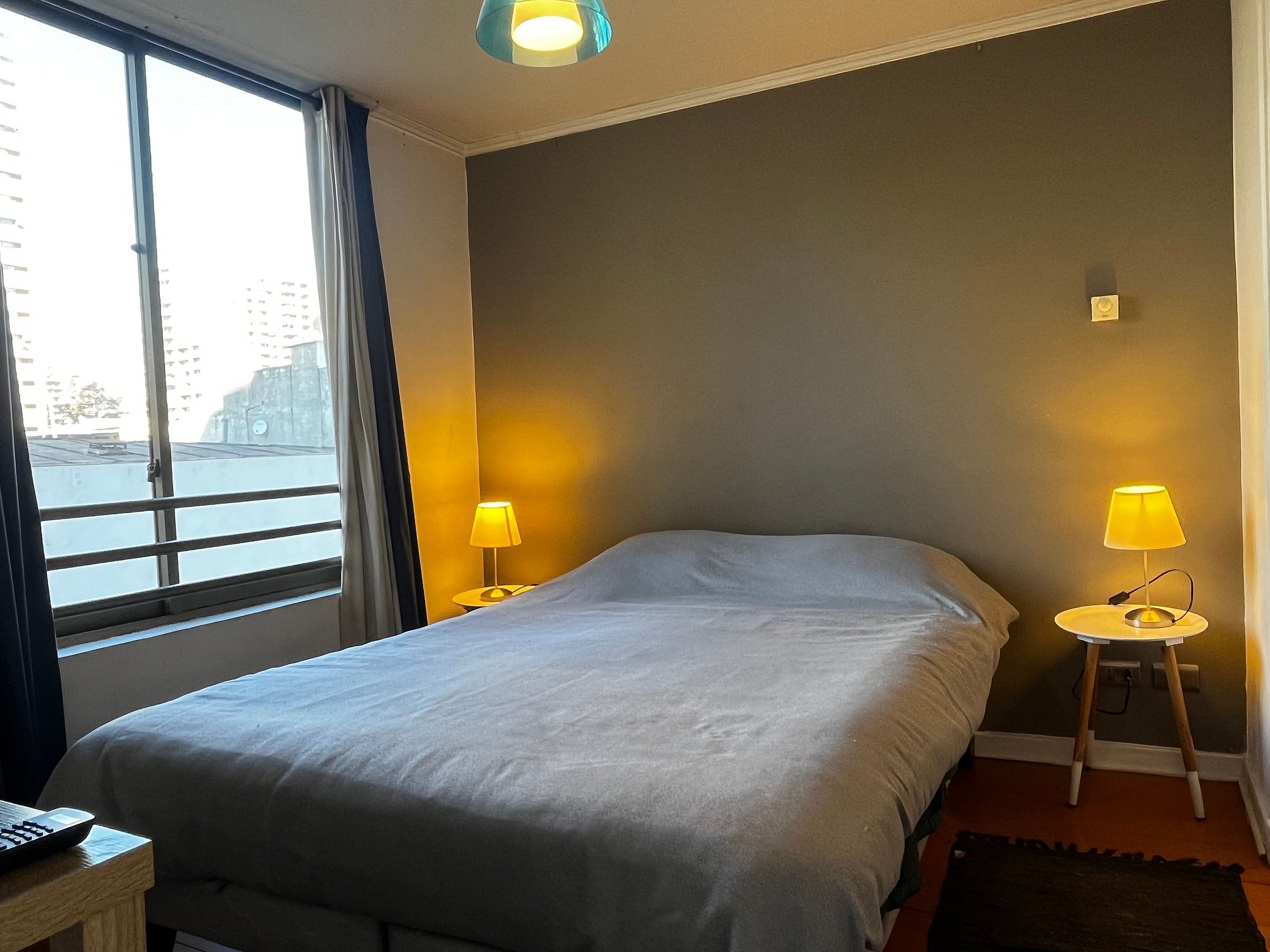 Almirante Pastene con Providencia. 2 ambientes, 1 dormitorio con una cama matrimonial , en el living una cama individual, 1 balcón, un baño con ducha en bañera , cocina pequeña pero full equipada. WiFi gratuita en el departamento. Ventilador, estufa eléctrica, toallas, plancha de ropa, secador de pelo y ropa de cama incluidos.