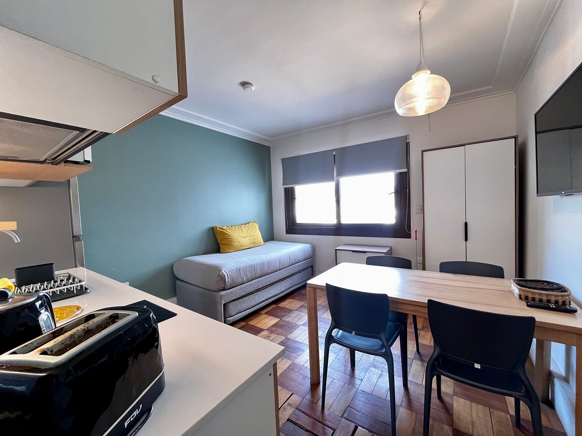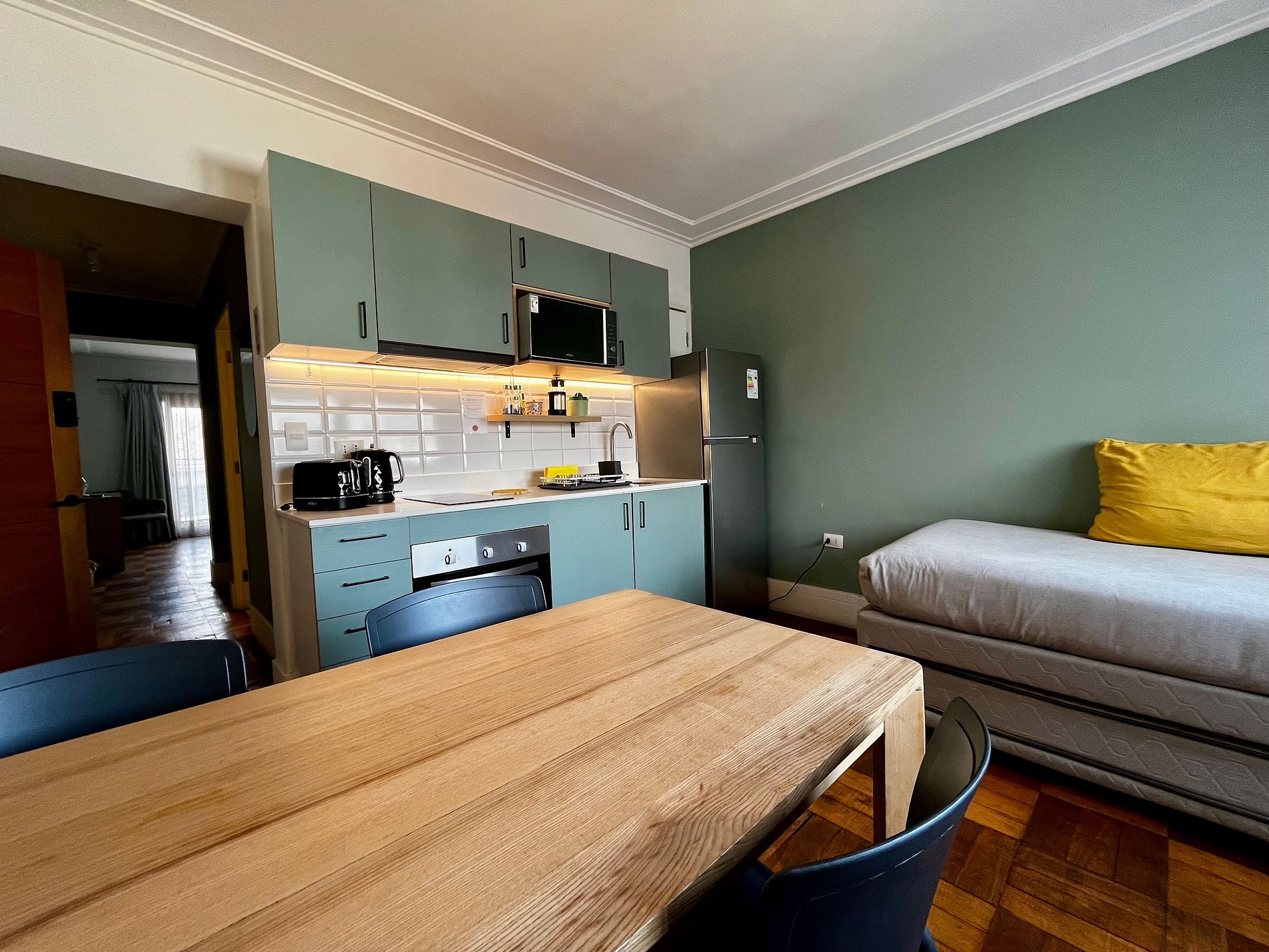 Segunda vez que me alojo. Es un buen lugar para viajes de pocos días, tiene todo lo esencial, está ubicado en una zona tranquila, con buenos restaurantes muy cercanos y a menos de 10 minutos caminando al metro. Es frío el departamento, al menos para nosotros que veníamos del norte del país. Si bien tiene unos termo ventiladores, quedaría mejor con una mayor calefacción o aislación.