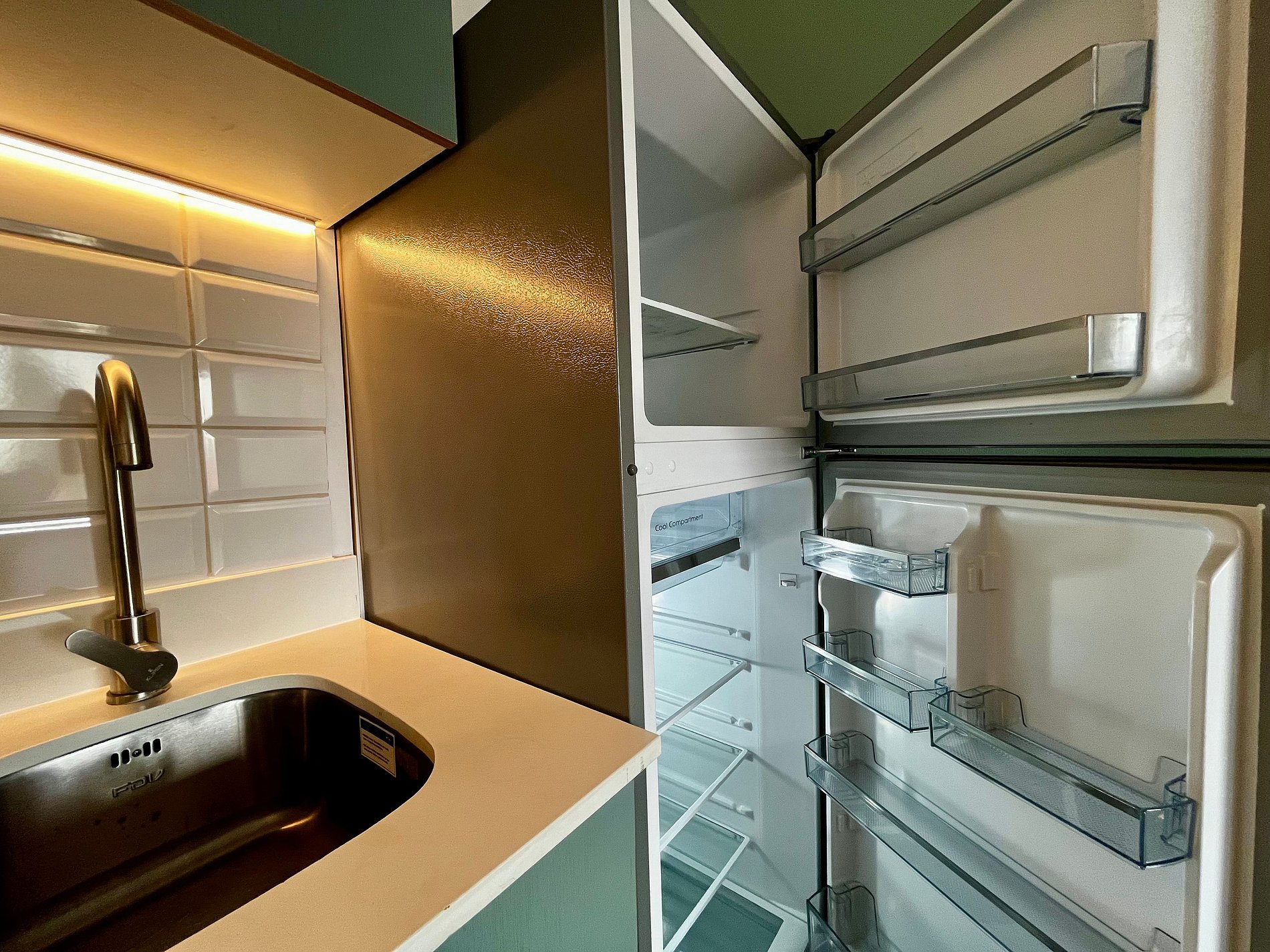 Recibí el depto y estaba con una poza de agua debajo del lavamanos qué tuve que limpiar por harto rato yo, tenía 2 estufas muy pequeñas y al ser un depa amplio y sin puertas hacia el dormitorio pasamos frío.
