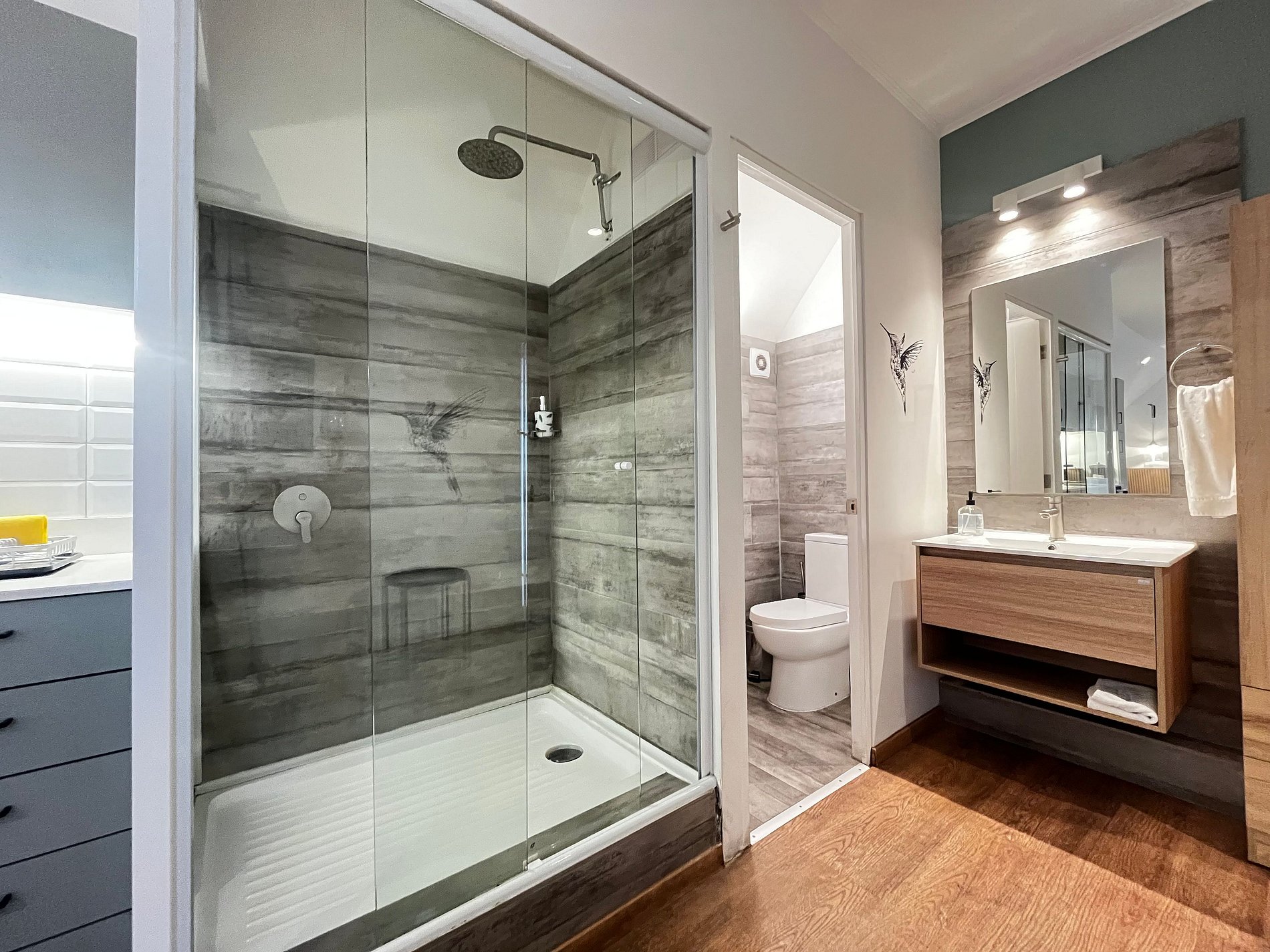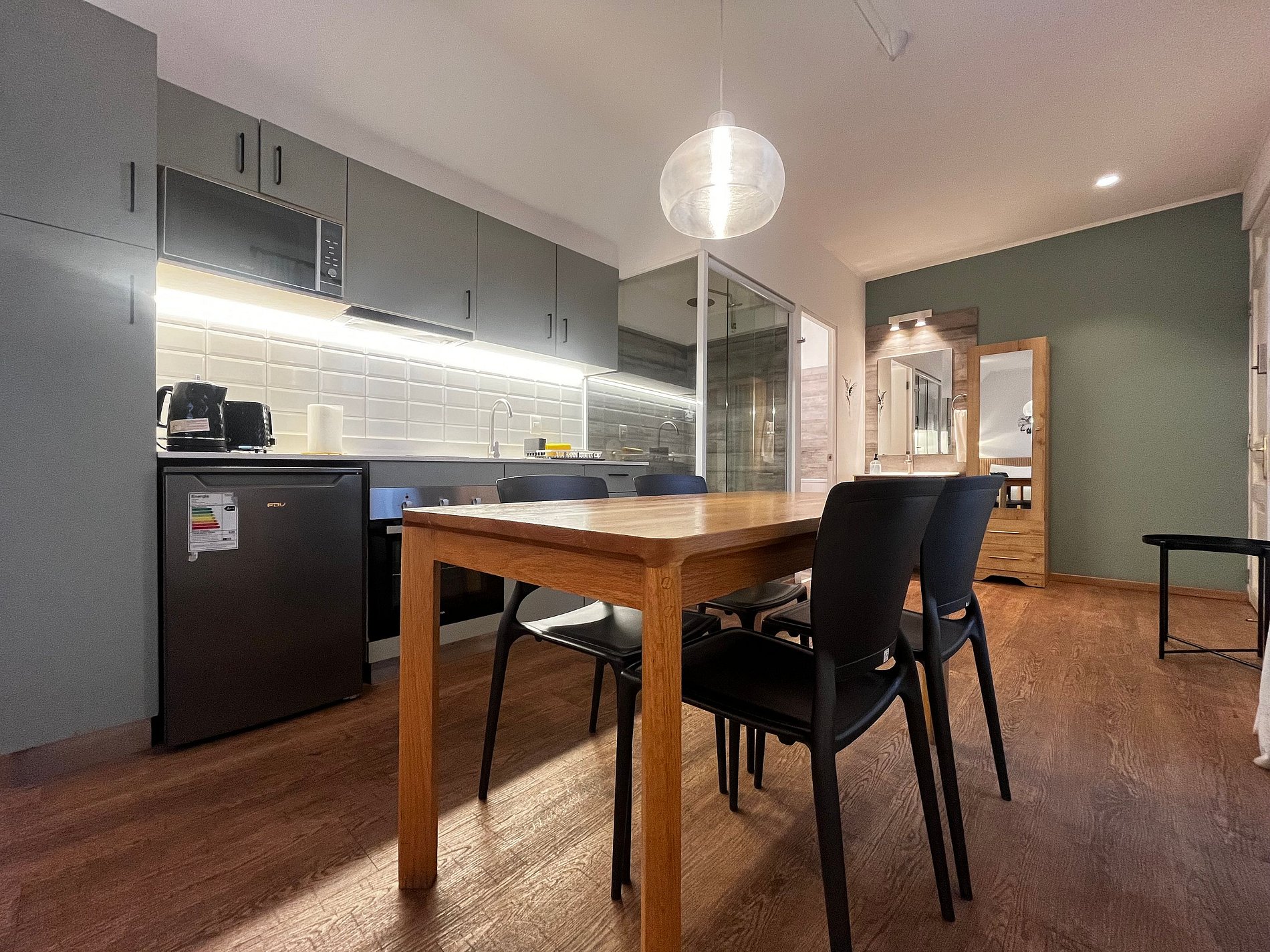Sistema Check in online e ingreso independiente con código de seguridad propio. Edificio 100% eléctrico. La casa consta de un patio central con mesas y sillas, espacio de uso común ideal para sentarse a conversar, tomar o comer algo al aire libre.