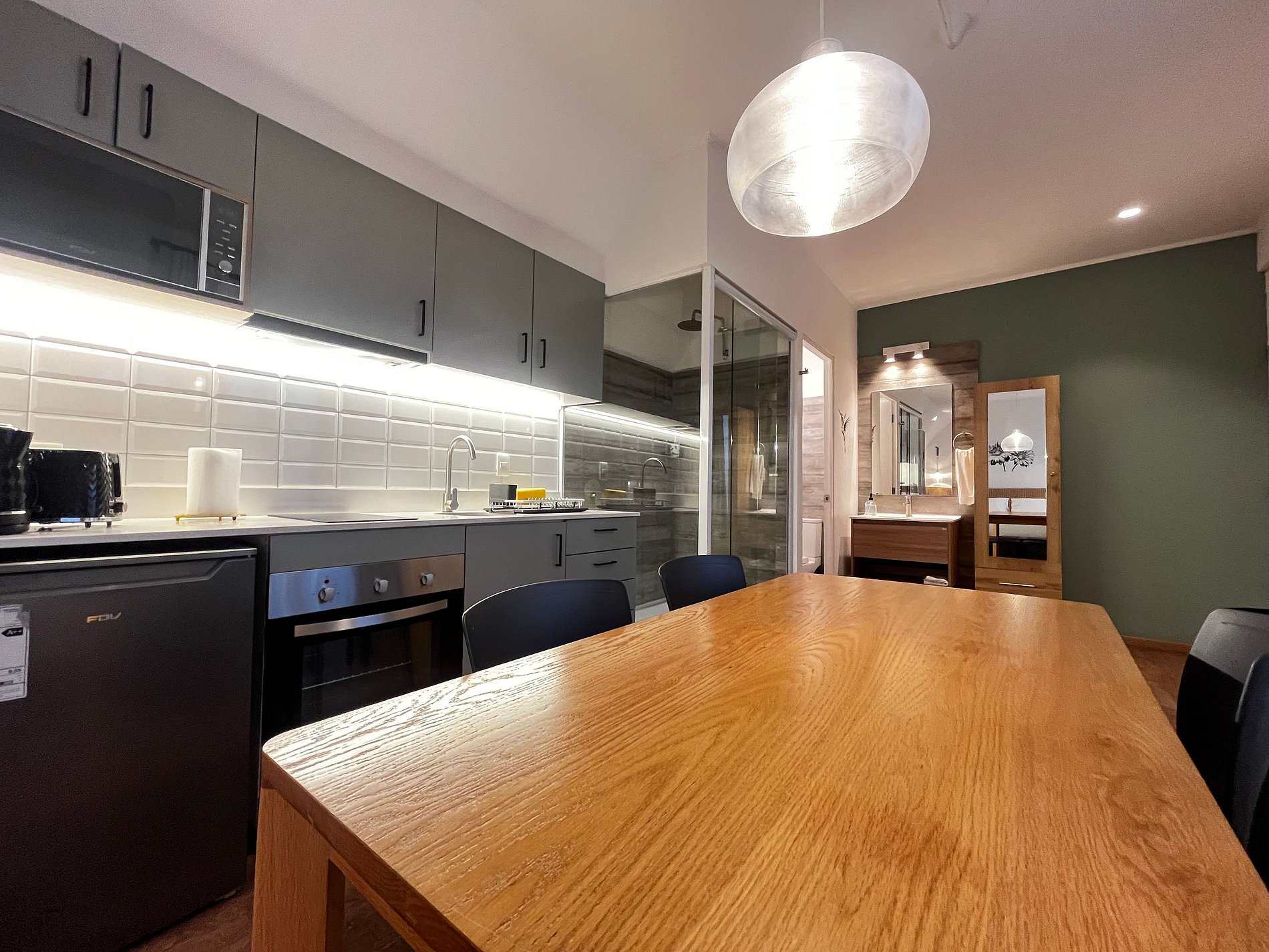 No había lo básico para un dpto de estas características, sal, azúcar, aceite. Ni siquiera una botella de agua de cortesía. Considerando que a veces se llega a un horario que está el comercio cerrado uno espera lo mínimo como un agua. Un mini rollo de papel higiénico para 4 días y dos personas. El gabinete de la ducha pegado a la cocina ( de mampara transparent), con un ploteado sería suficiente para tener privacidad. El sistema de calefacción, un pequeño caloventor ruidoso no es suficiente. Cosas muy simples que mejoran la estadía.