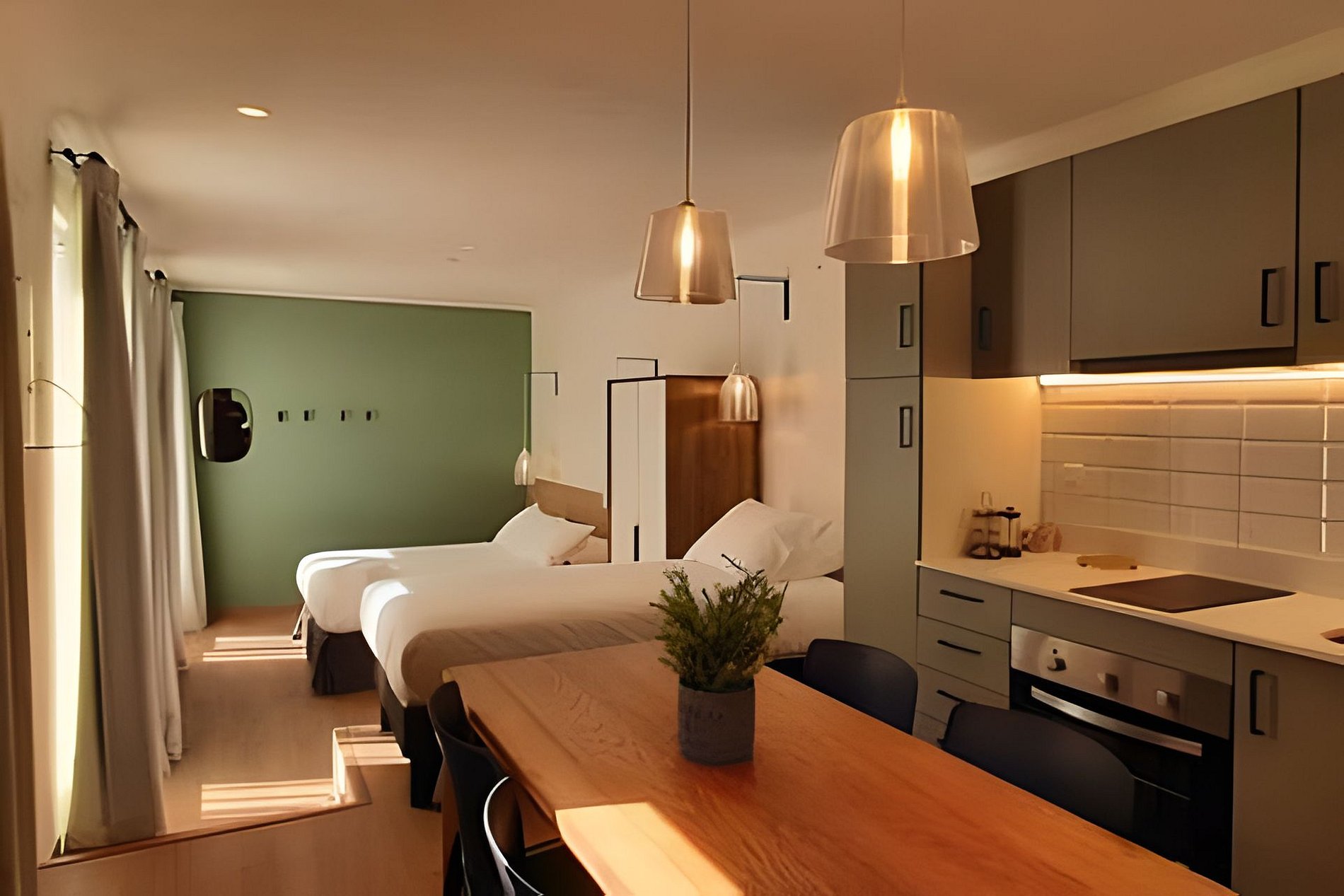 Sistema Check in online e ingreso independiente con código de seguridad propio. Edificio 100% eléctrico. La casa consta de un patio central con mesas y sillas, espacio de uso común ideal para sentarse a conversar, tomar o comer algo al aire libre.