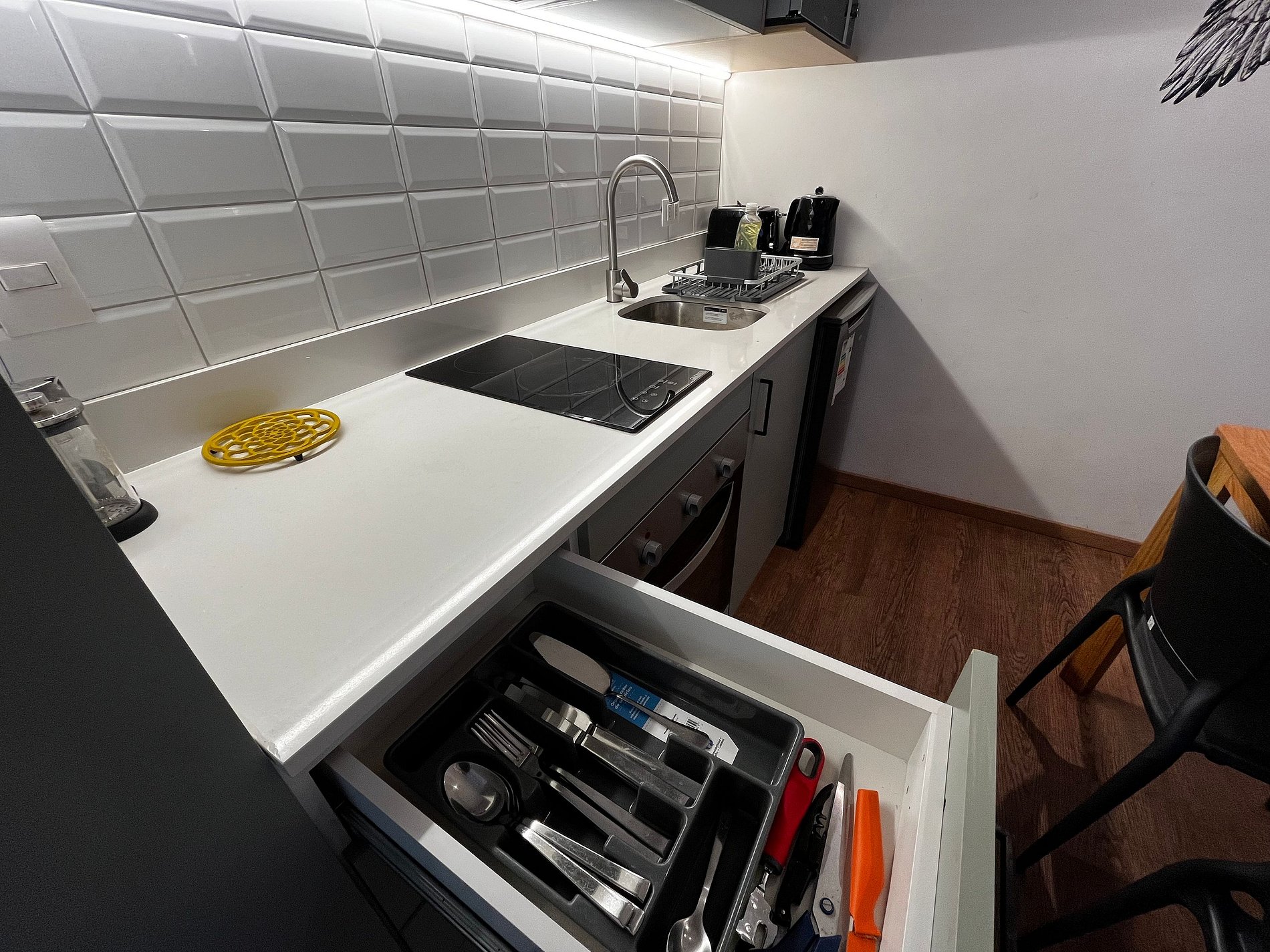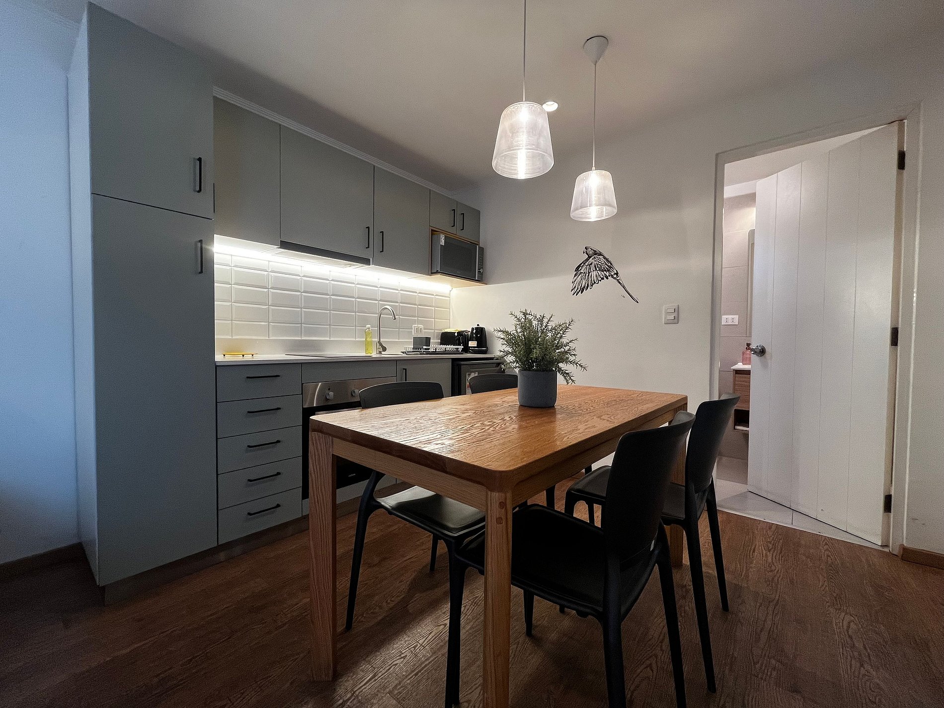 Providencia sector calles Condell y Salvador. Departamento de 1 ambiente, una cama doble y una cama individual, un baño con ducha , cocina full equipada, . El departamento forma parte del atractivo y elegante Edificio Living Terranova.