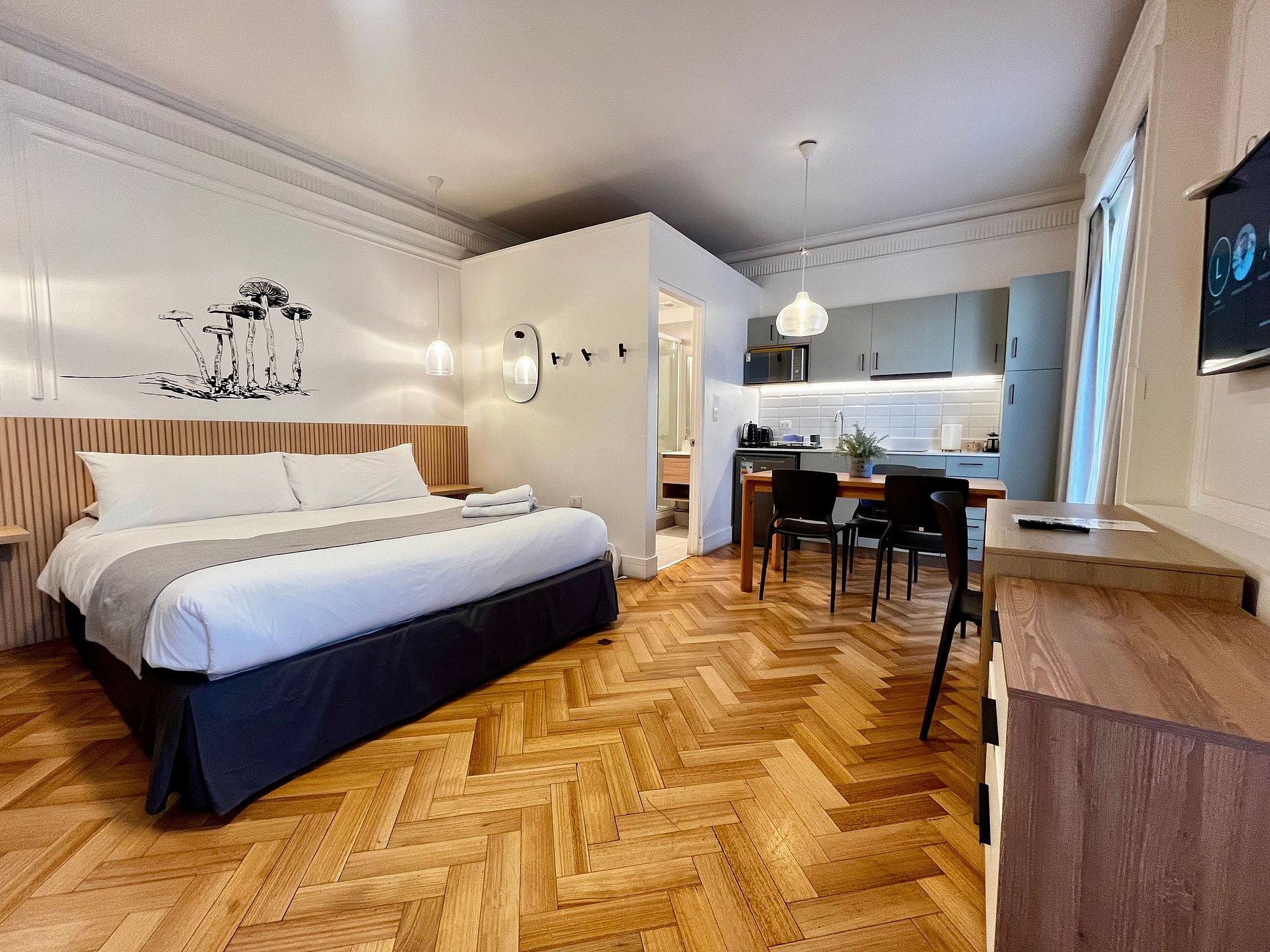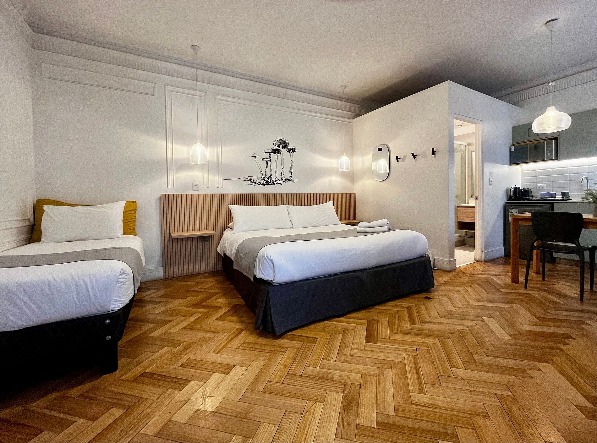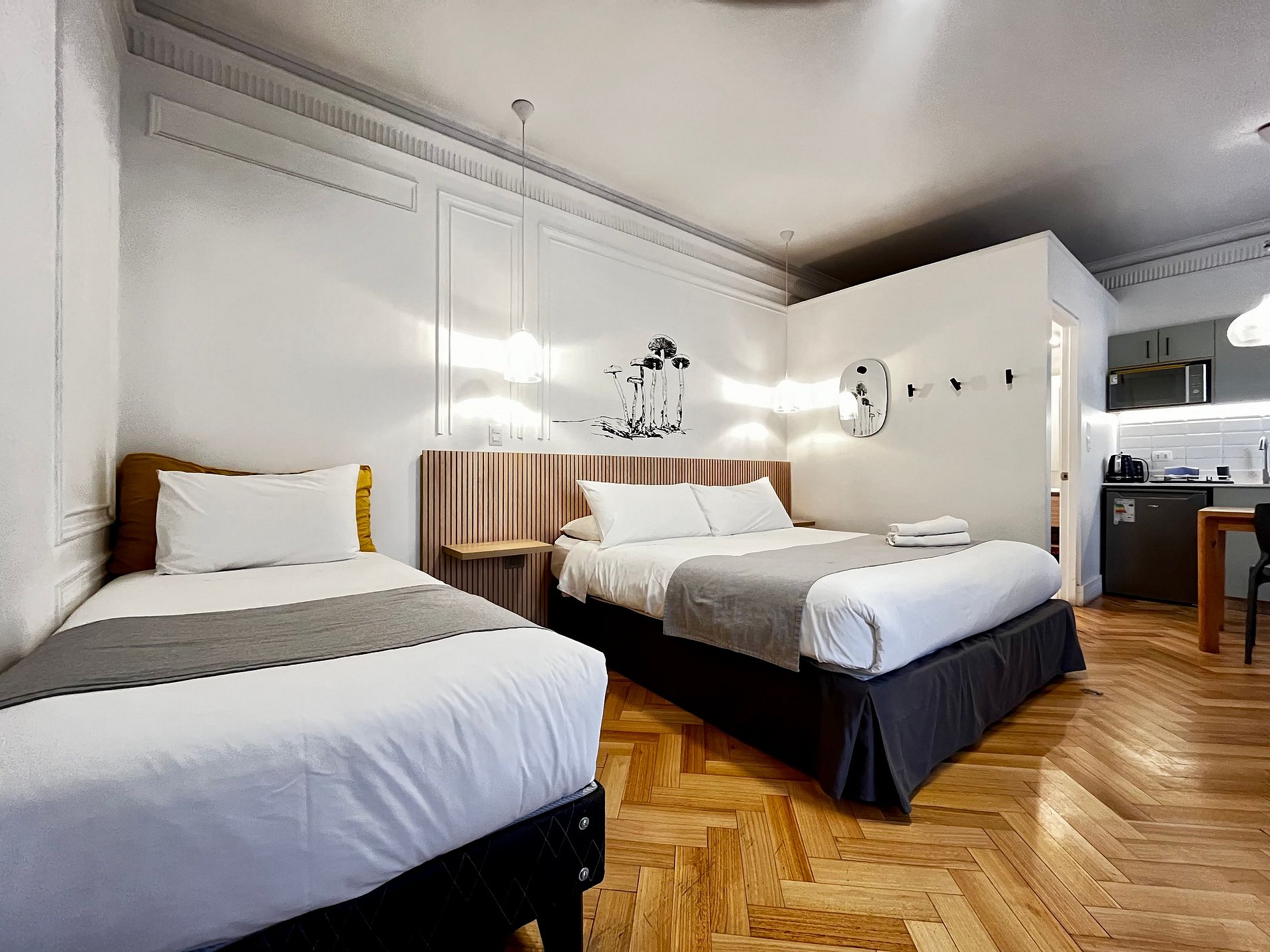 Providencia sector calles Condell y Salvador. Departamento de 1 ambiente, una cama doble y una cama individual, un baño con ducha , cocina full equipada, . El departamento forma parte del atractivo y elegante Edificio Living Terranova.
