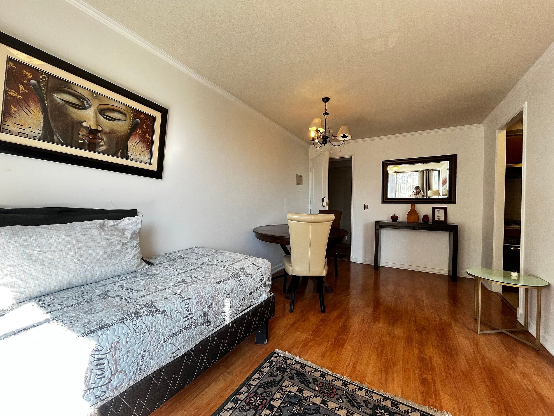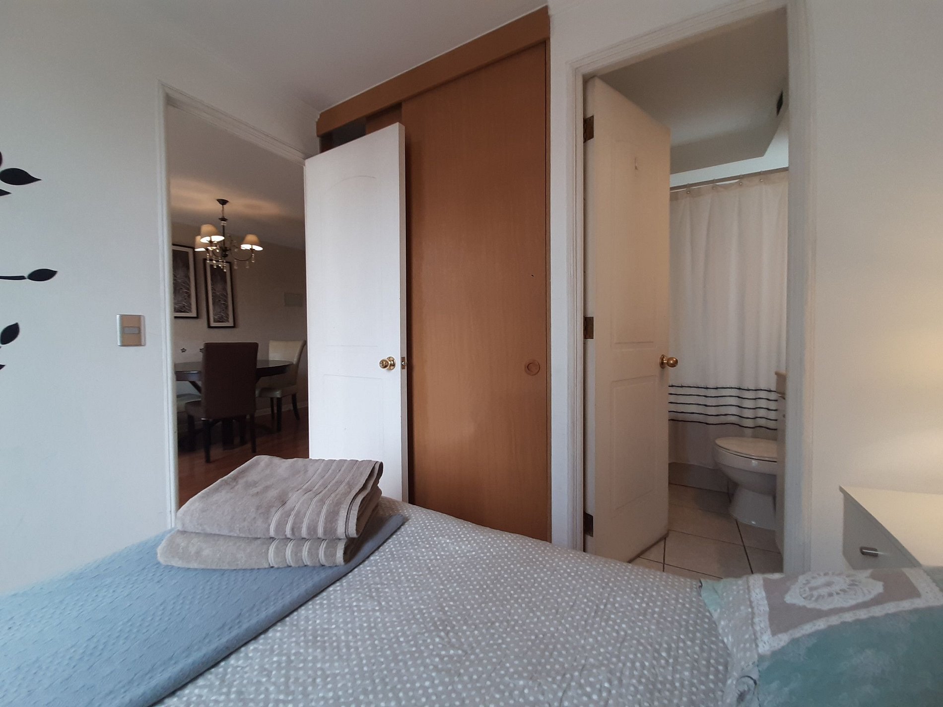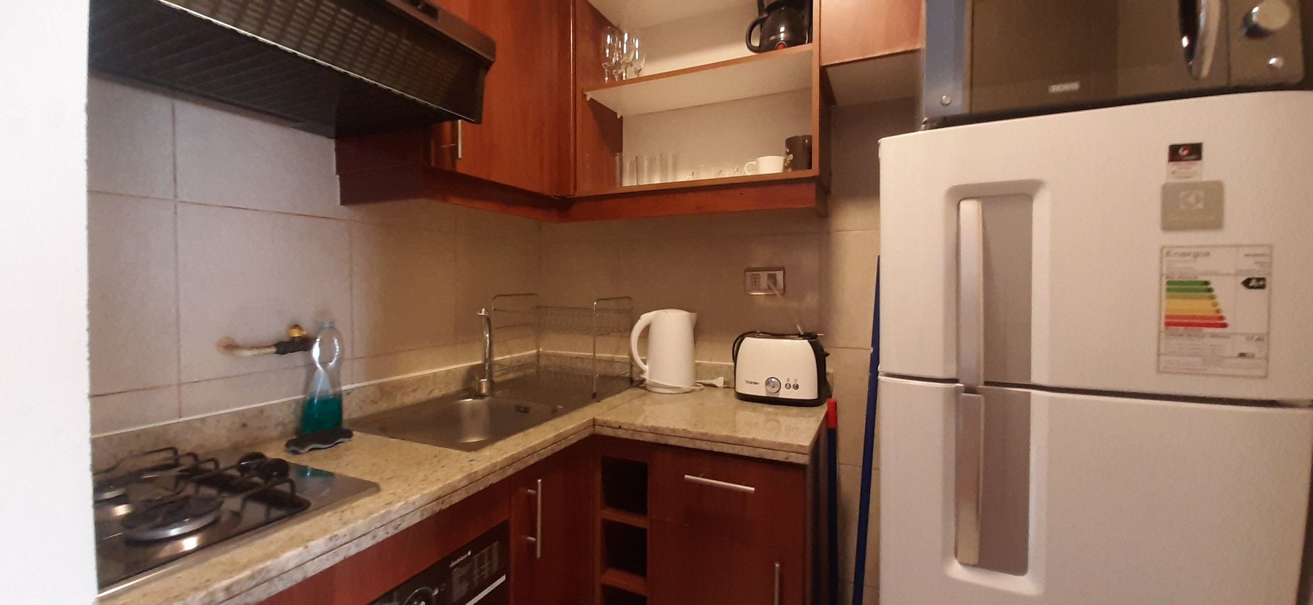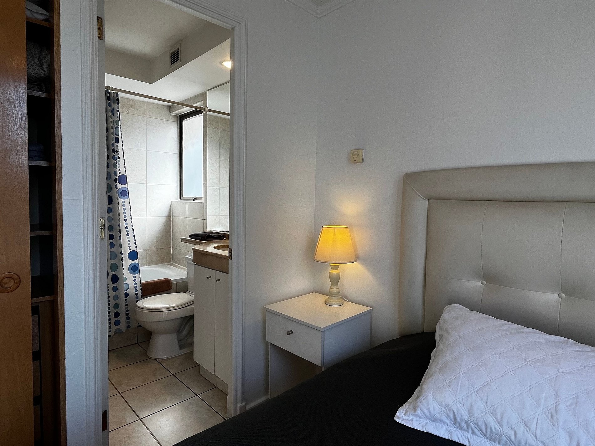 Almirante Pastene con Providencia. 2 ambientes, 1 dormitorio con una cama matrimonial , en el living una cama individual, 1 balcón, un baño con ducha en bañera , cocina pequeña pero full equipada. WiFi gratuita en el departamento. Tv en el living. Ventilador, estufa eléctrica, toallas, plancha de ropa, secador de pelo y ropa de cama incluidos.