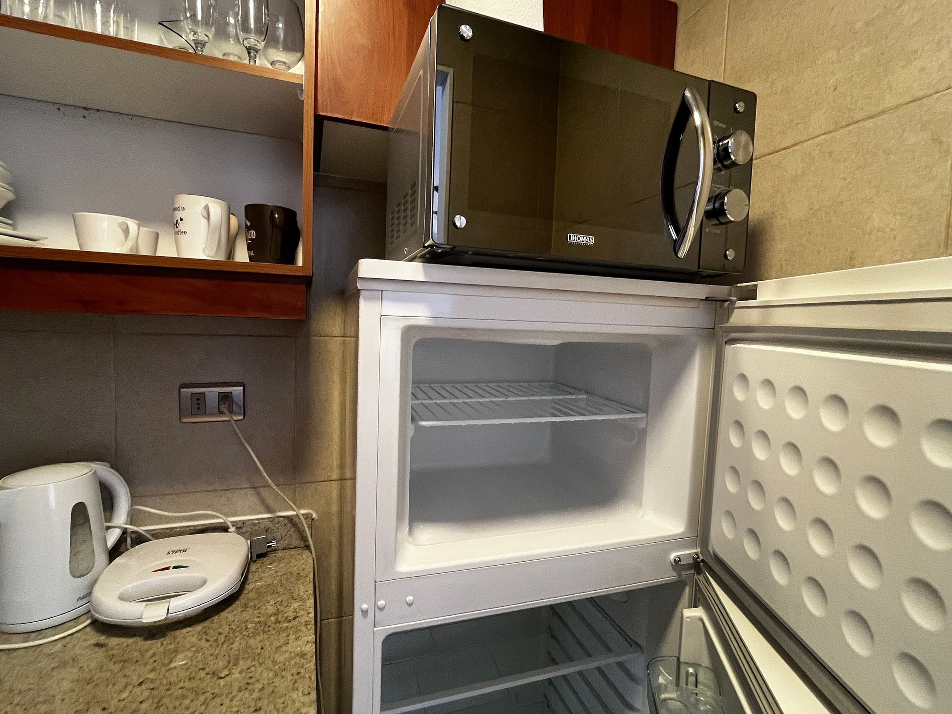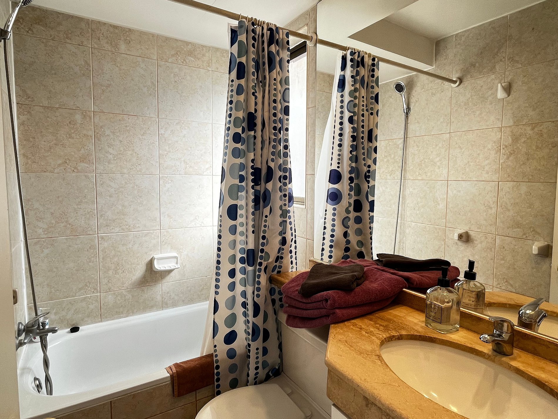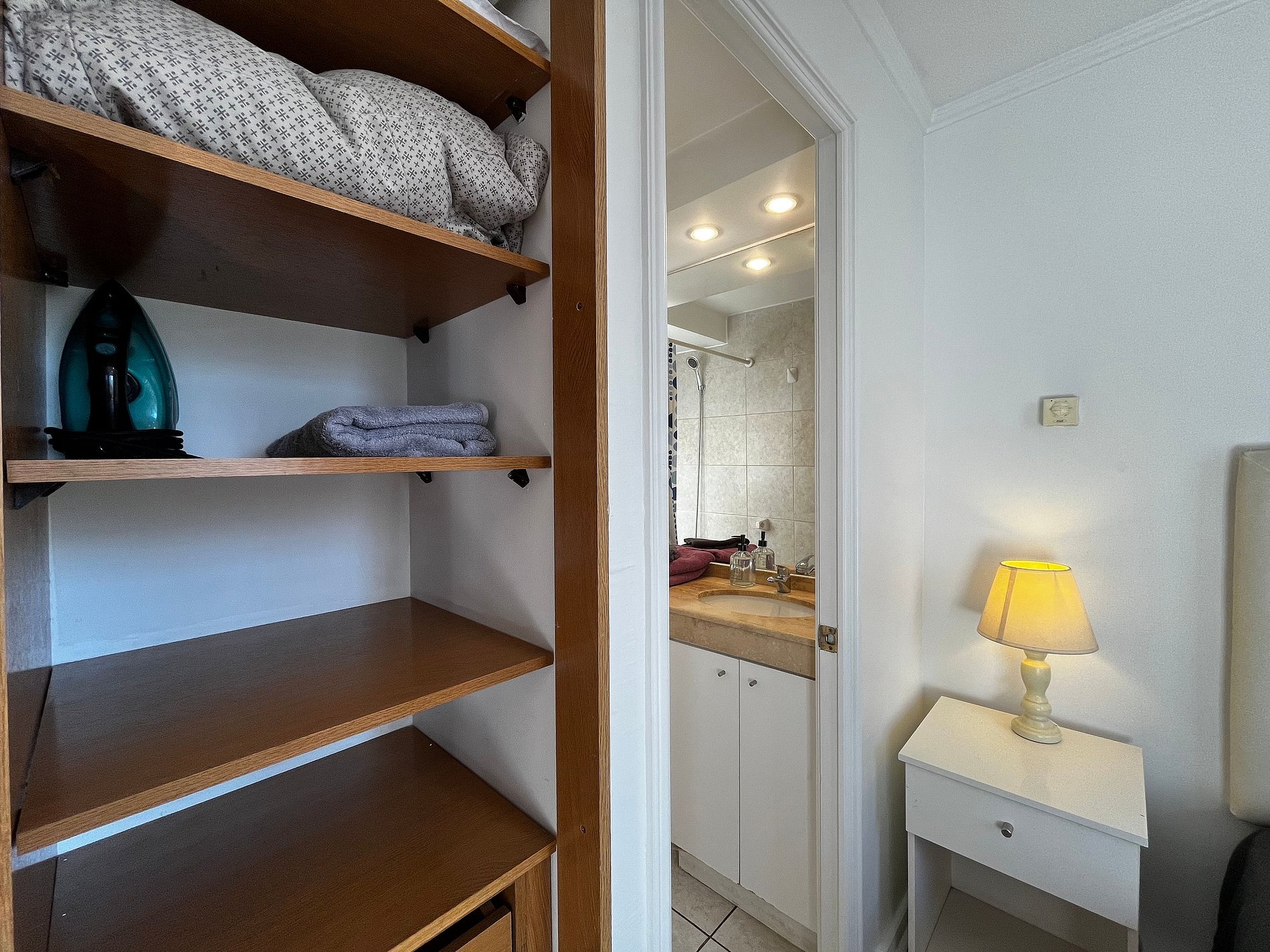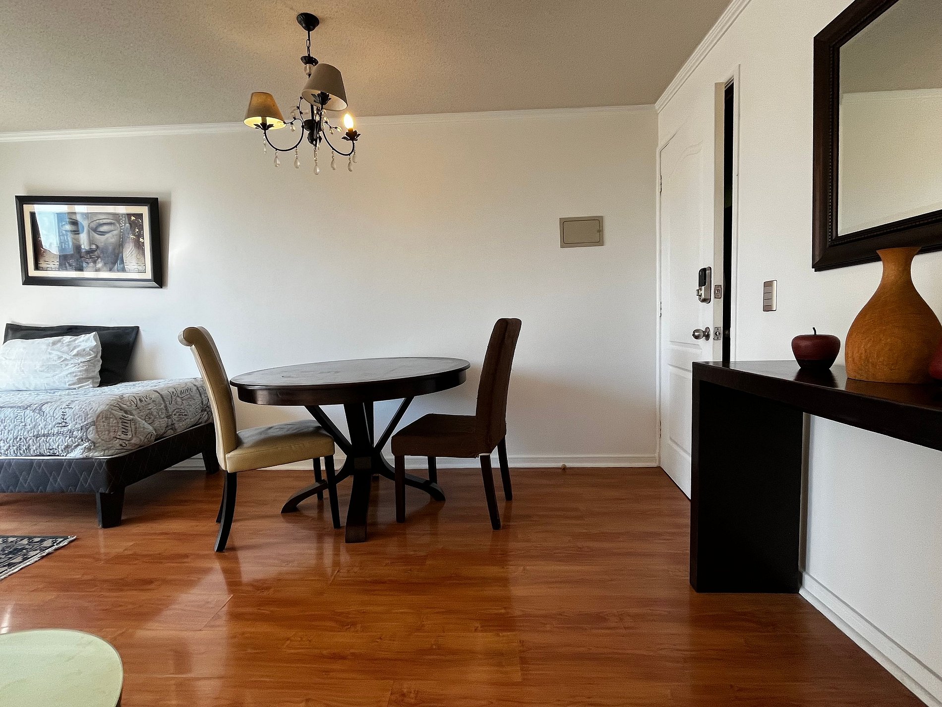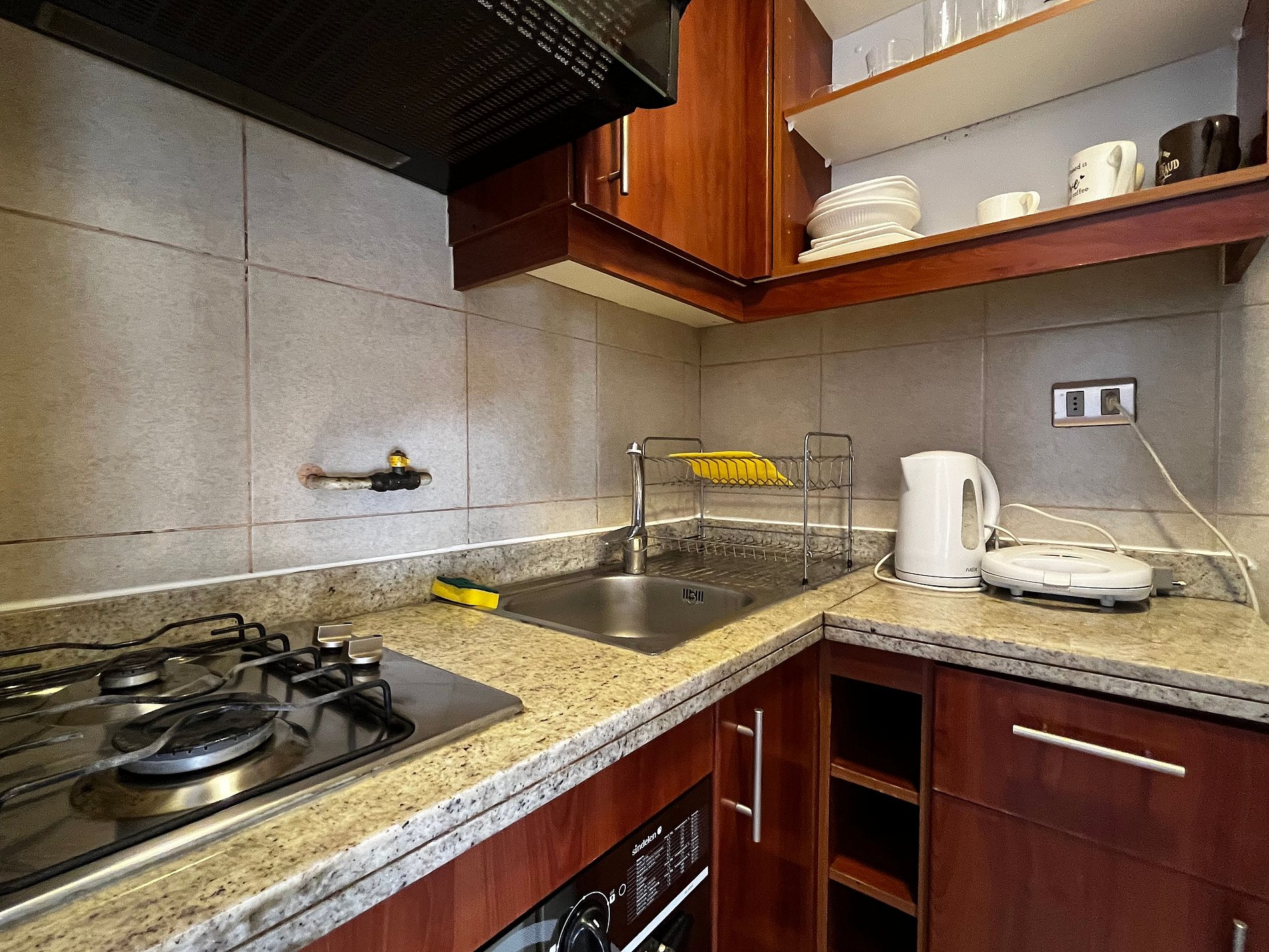 Almirante Pastene con Providencia. 2 ambientes, 1 dormitorio con una cama matrimonial , en el living una cama individual, 1 balcón, un baño con ducha en bañera , cocina pequeña pero full equipada. WiFi gratuita en el departamento. Tv en el living. Ventilador, estufa eléctrica, toallas, plancha de ropa, secador de pelo y ropa de cama incluidos.