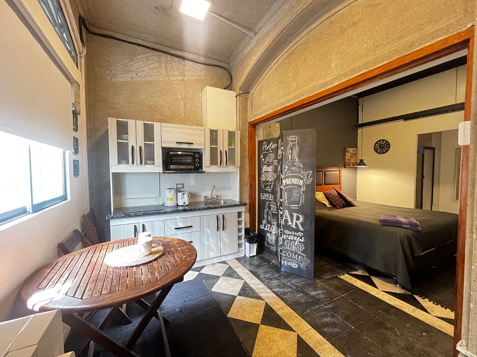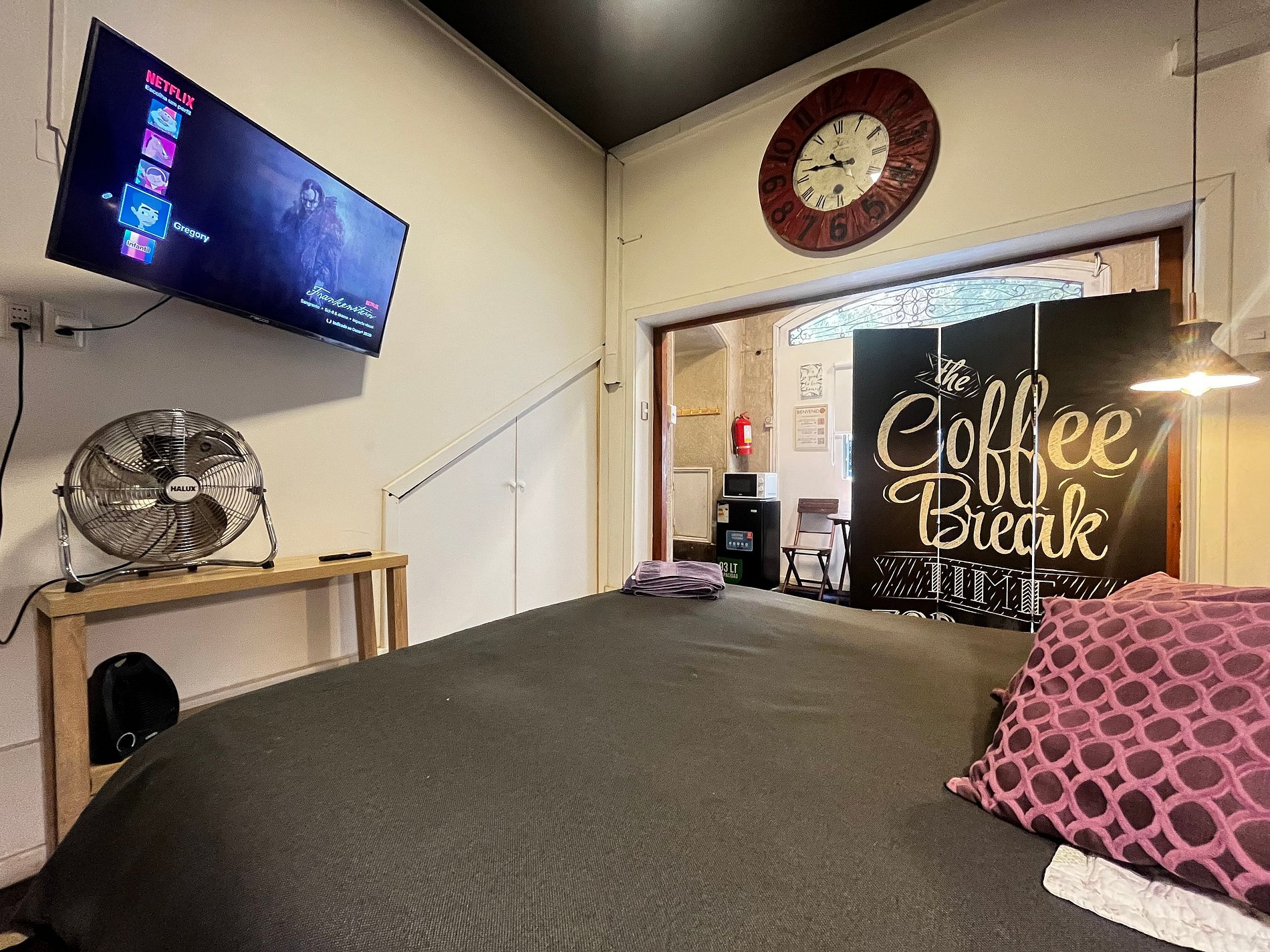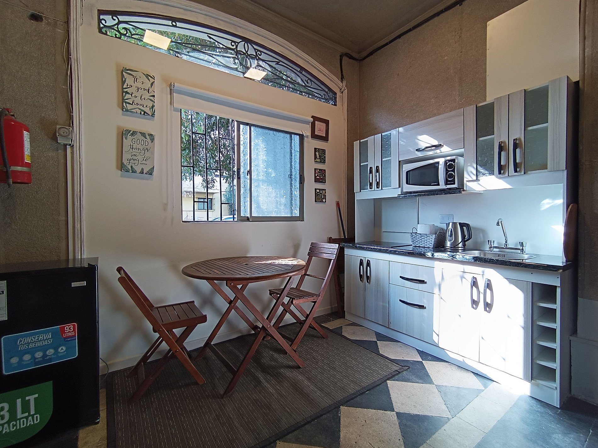 Amplio, bien mantenido, contaba con lo mínimo requerido para poder estar tiempos largos o cortos. Microondas, refri, hervidor, etc Respuestas rápidas en todo momento, calle tranquila