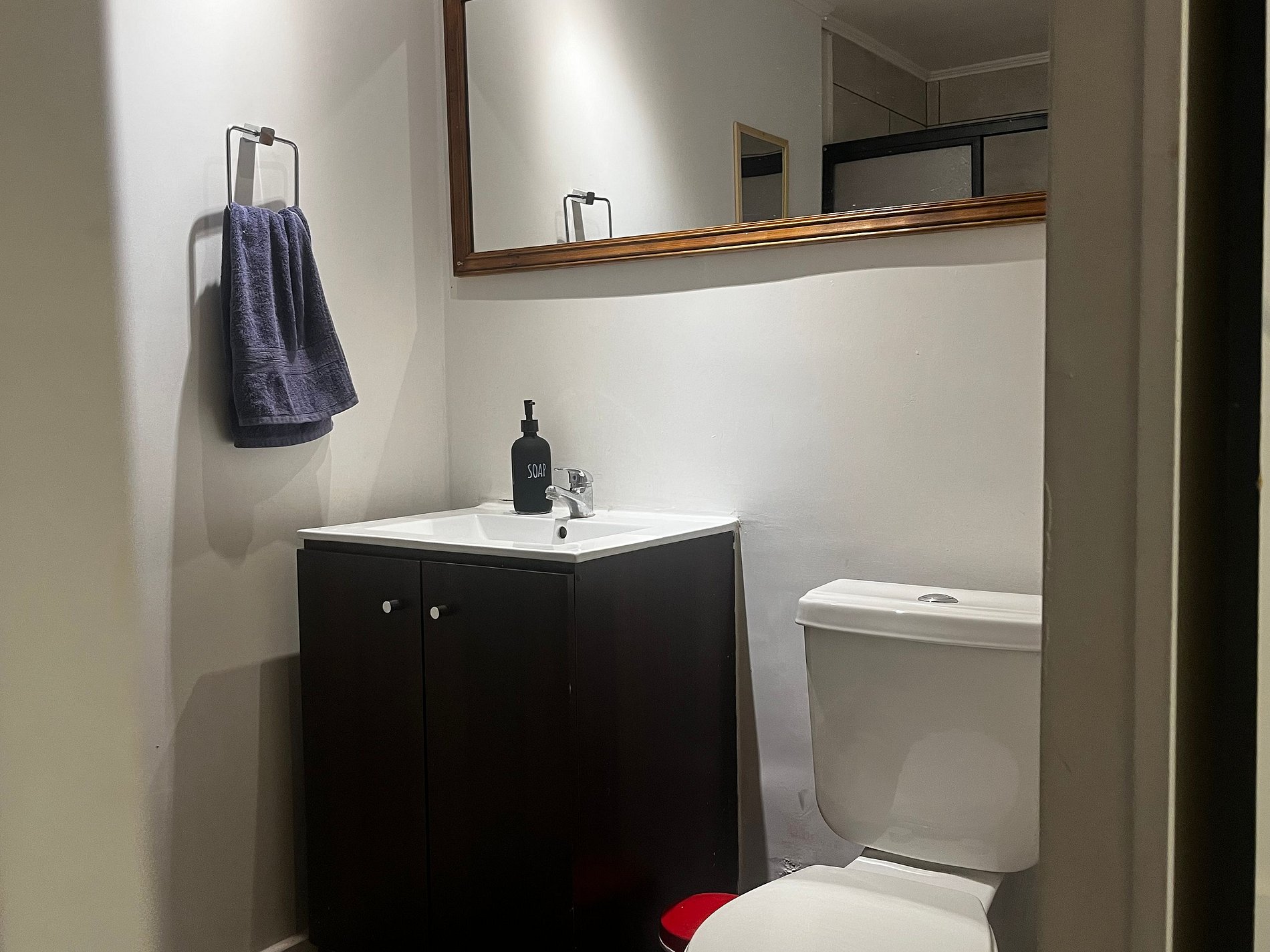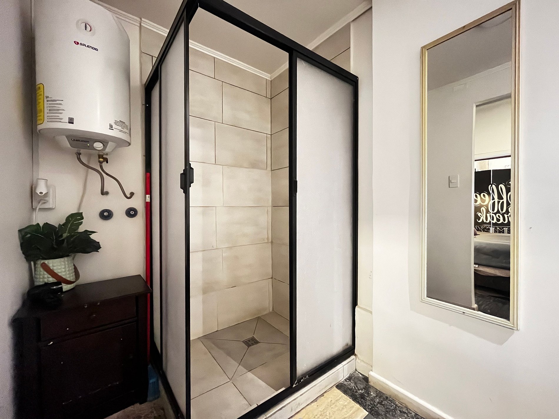 Falta una ampoleta , al costado de la cama; y falta el soporte de la ducha teléfono
