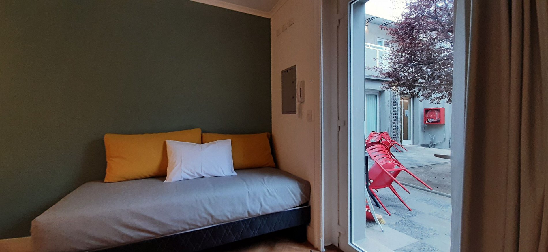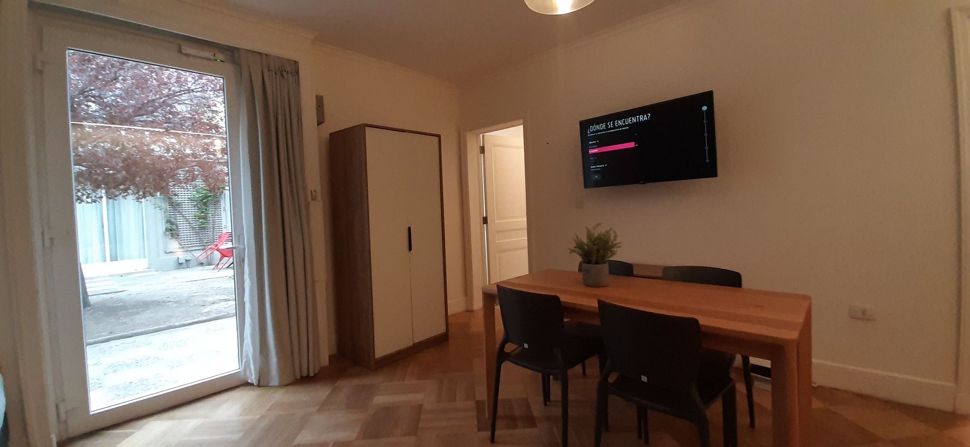 Sistema Check in online e ingreso independiente con código de seguridad propio. Edificio 100% eléctrico. La casa consta de un patio central con mesas y sillas, espacio de uso común ideal para sentarse a conversar, tomar o comer algo al aire libre.
