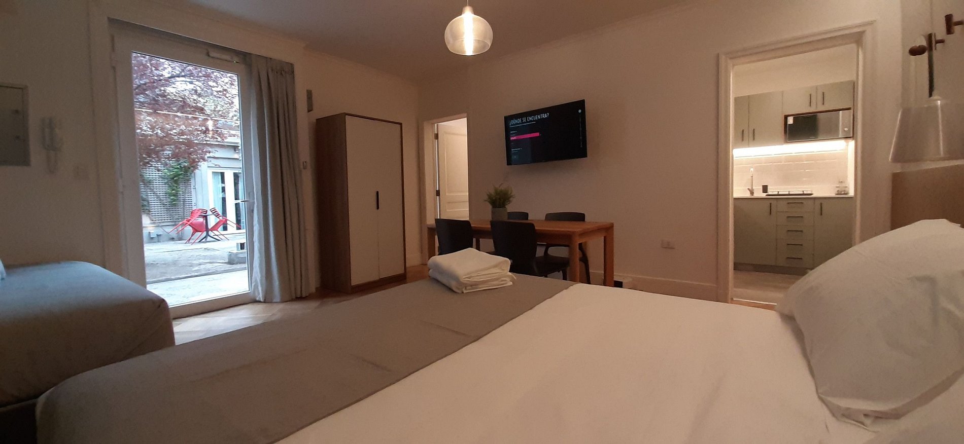 Providencia sector calles Condell y Salvador. Departamento de 1 ambiente, una cama doble y una cama individual, un baño con ducha , cocina full equipada, . El departamento forma parte del atractivo y elegante Edificio Living Terranova.