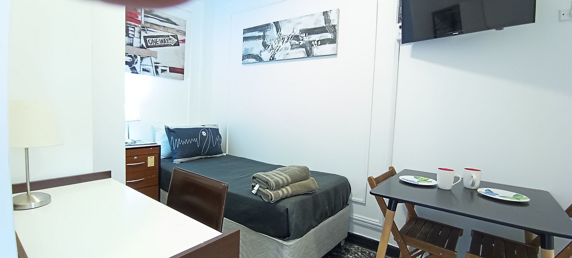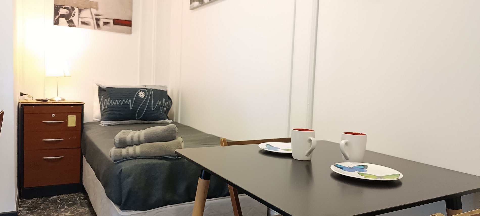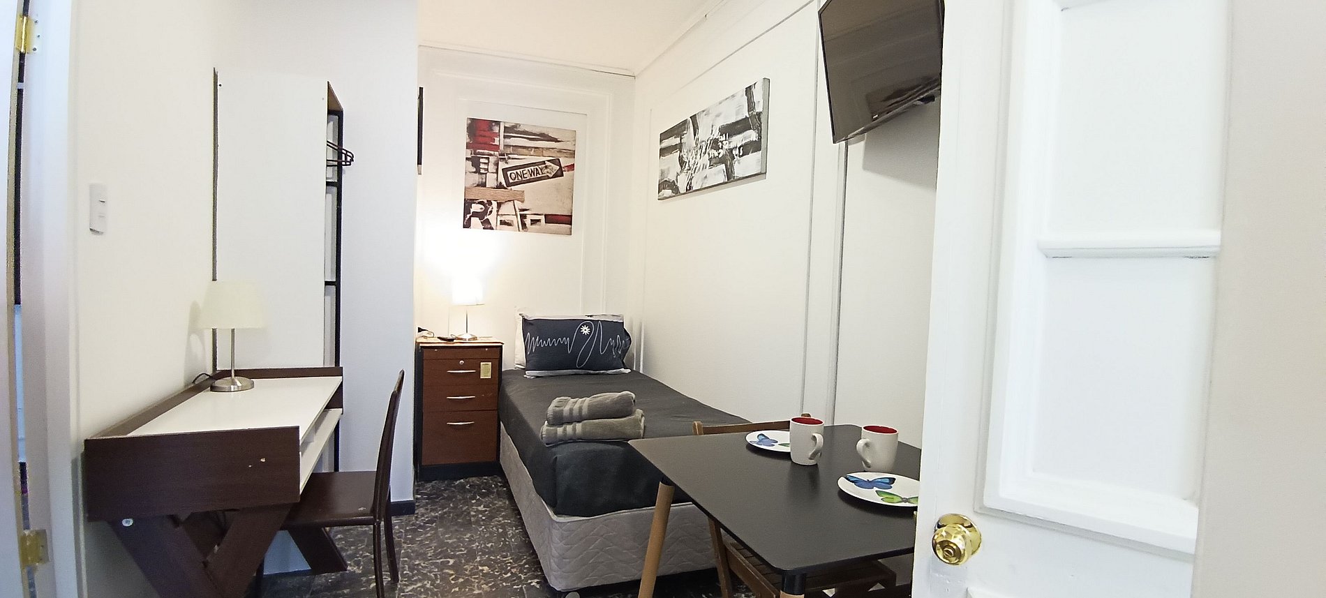 Calle Huelen, Providencia. 1 ambiente, cama individual un baño con ducha , cocina pequeña equipada. WiFi gratuita en el departamento. Tv Cable,, toallas, plancha de ropa, secador de pelo y ropa de cama incluidos. Estacionamiento cerrado y pagado a 4 cuadras, sujeto a disponibilidad. Está situado en un pequeño edificio estilo neoclásico con oficinas en el primer nivel y apartamentos recién remodelados en el segundo piso.