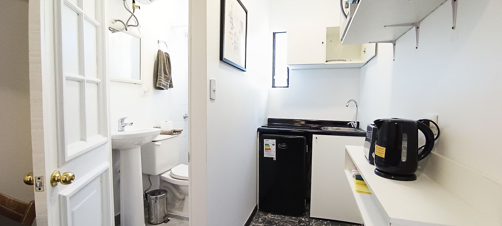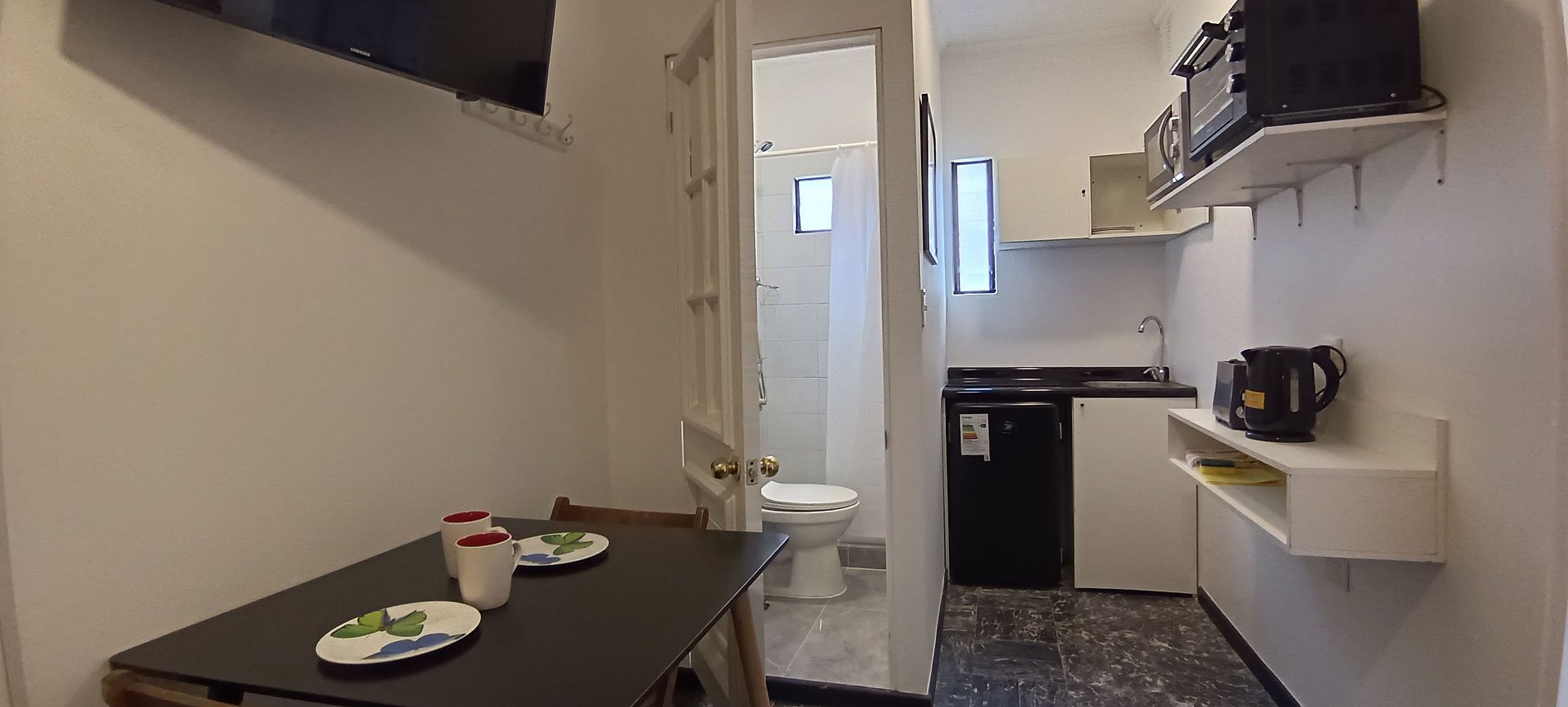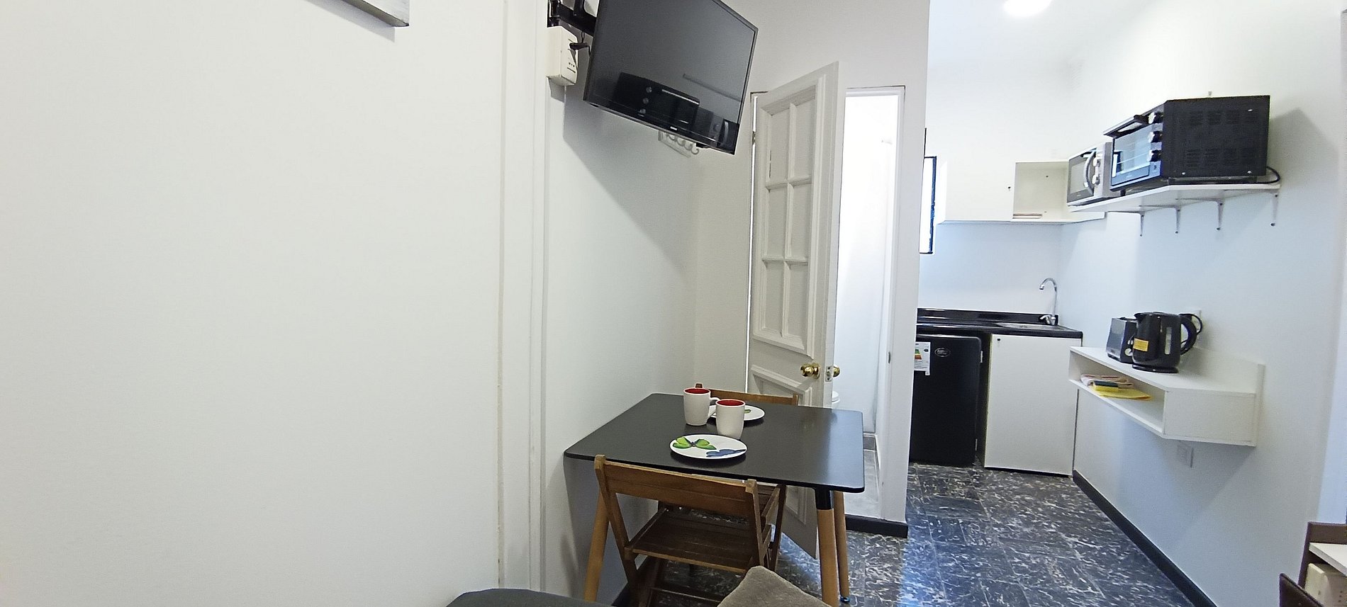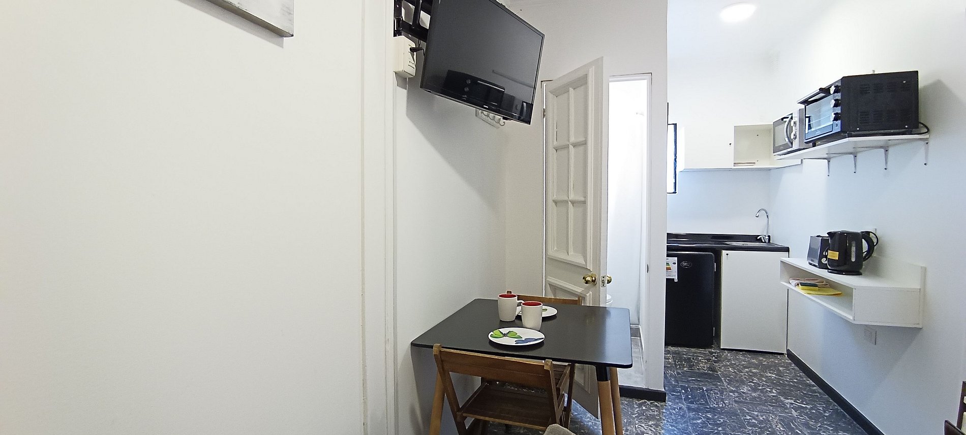 lugar limpio, las cosas justa q se necesita, aunque me hubiese gustado una juguera, lo único q molestaba era el pequeño ruido q hacía la tetera eléctrica, de ahí todo bien.