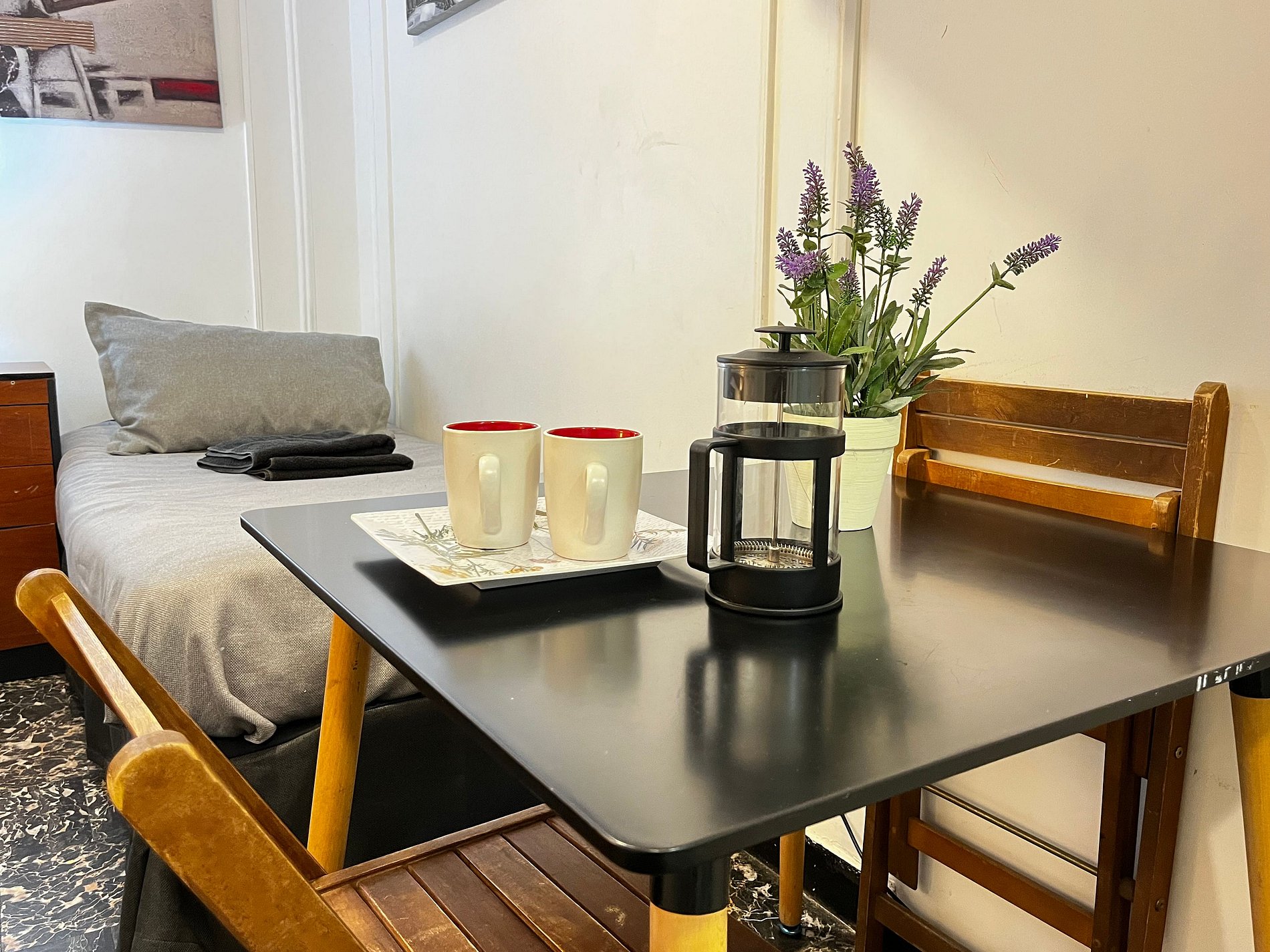 lugar limpio, las cosas justa q se necesita, aunque me hubiese gustado una juguera, lo único q molestaba era el pequeño ruido q hacía la tetera eléctrica, de ahí todo bien.