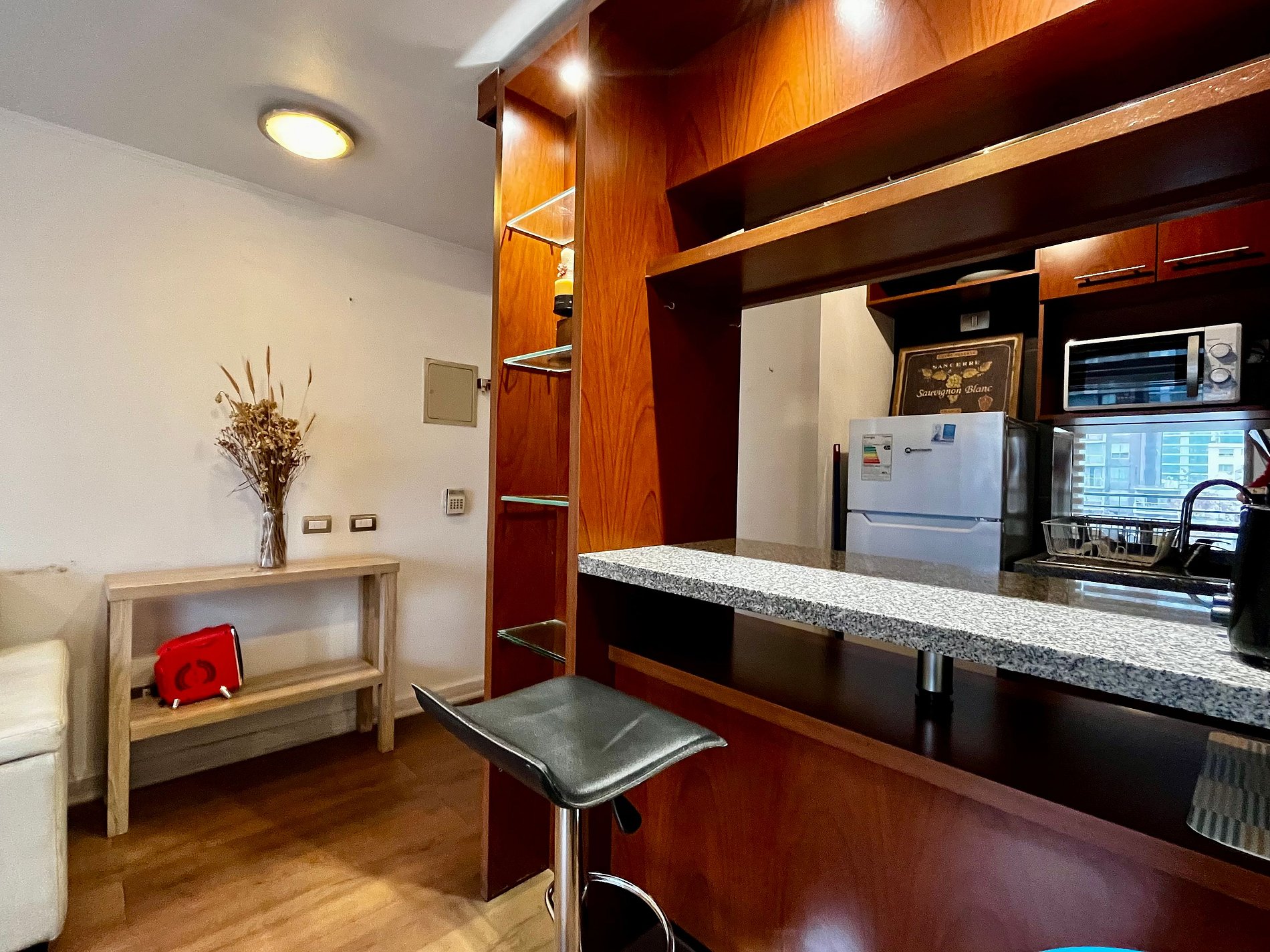 Departamento muy cómodo, con una excelente ubicación a pasos del metro, y con mucha variedad de comercio alrededor. Ideal para pasar unos días en Santiago y recorrer la ciudad.