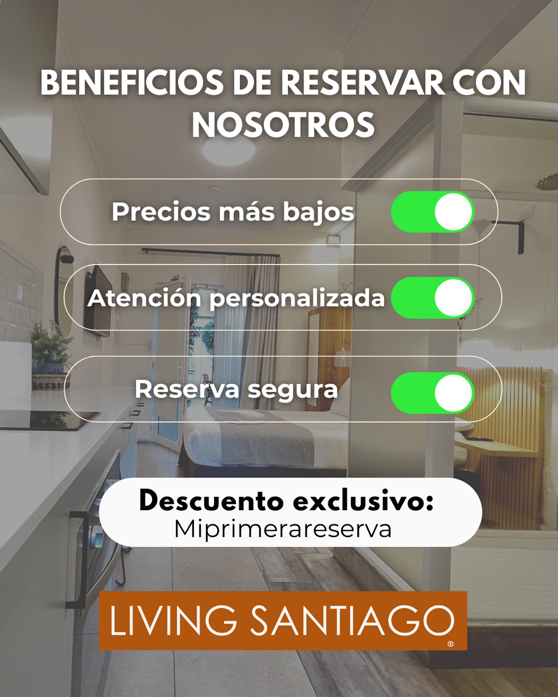 Te invitamos a también visitar nuestra página web, Living Santiago. Ahí podrás ver fotos, videos y valores de nuestros apartamentos. 🤫 Código Promocional : miprimerareserva