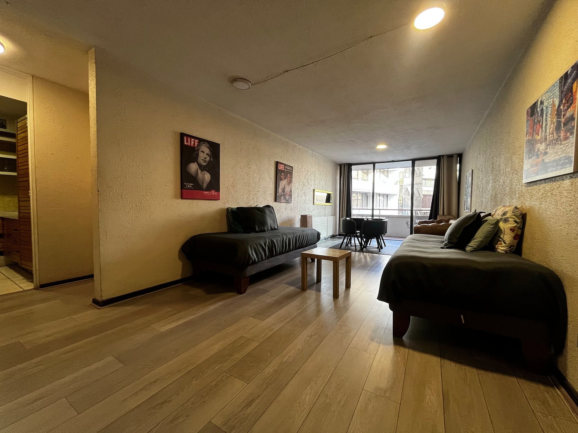 Muy buena ubicación, tiene cercanía a todo y el metro a solo una cuadra, todo perfecto. El ventanal enorme es increíble, pediría solamente elevar el televisor en el dormitorio y acercar a la mesa comedor el televisor del living