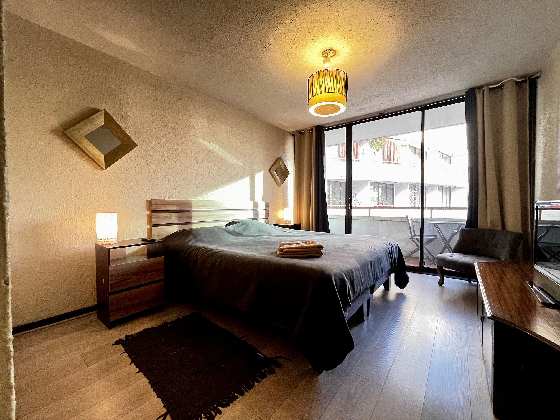 Muy buena ubicación, tiene cercanía a todo y el metro a solo una cuadra, todo perfecto. El ventanal enorme es increíble, pediría solamente elevar el televisor en el dormitorio y acercar a la mesa comedor el televisor del living