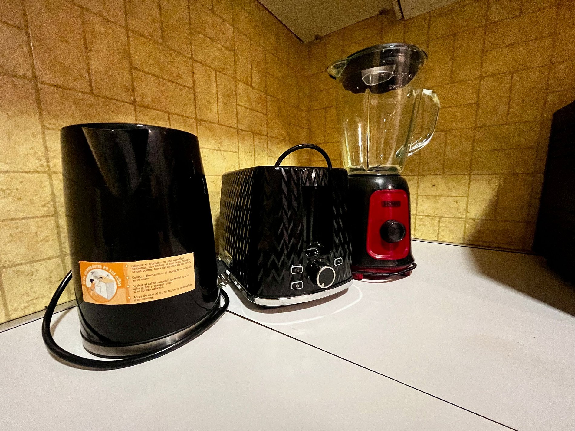 2 espacios , 1 quarto, cama de casal king size, 2 camas de solteiro na sala, 1 varanda com acesso pelo quarto e sala, banheiro com ducha na banheira, cozinha totalmente equipada. WiFi grátis no apartamento. TV a cabo na sala, ventilador, fogão elétrico, toalhas, ferro de passar roupa, secador de cabelo e roupa de cama incluída.
