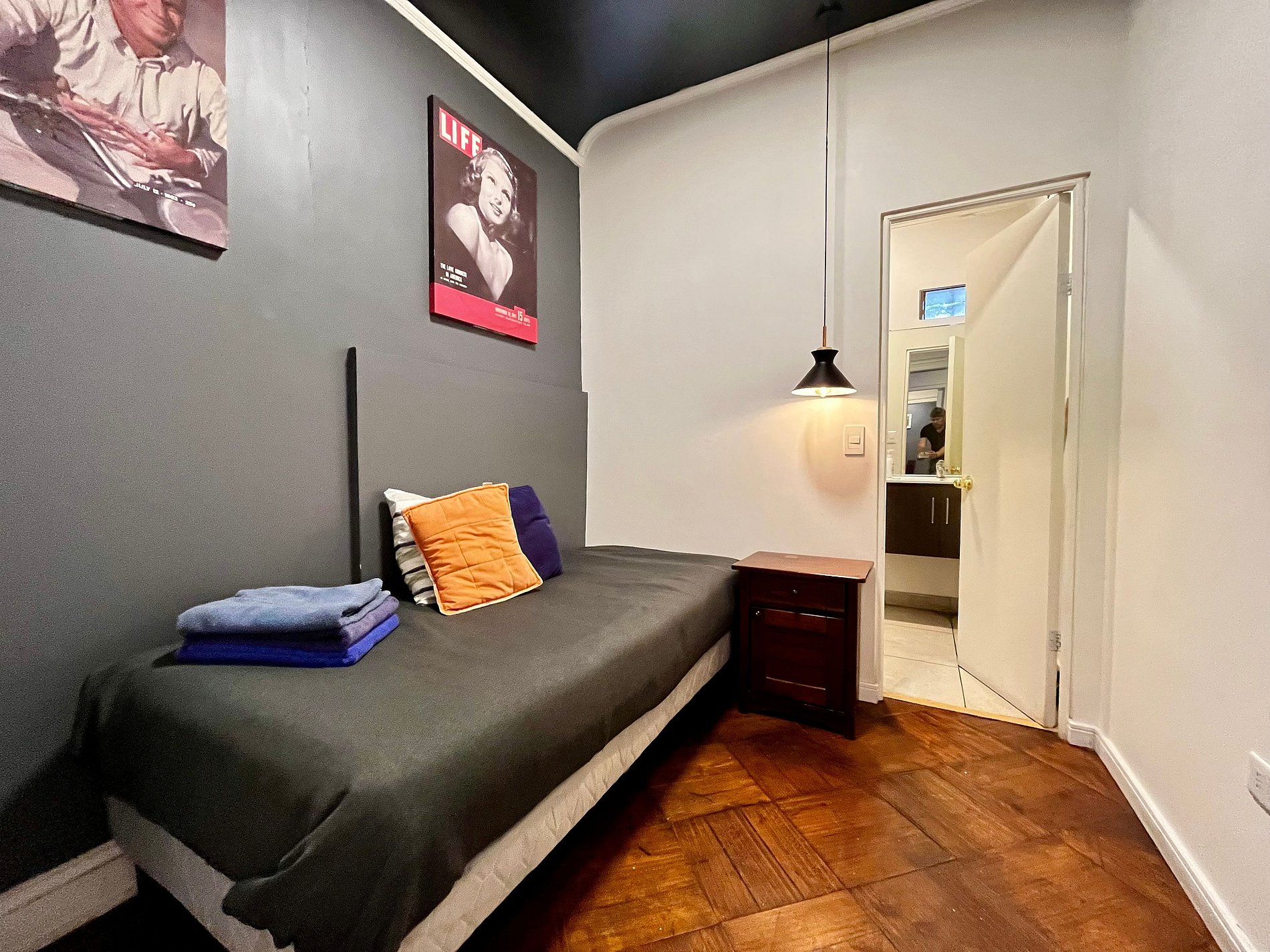 ESTACIONAMENTO PAGO A 4 QUARTEIRÕES, SUJEITO À DISPONIBILIDADE Rua Huelen, Providência. 2 quartos, quarto com cama de casal king size, segundo quarto com duas camas de solteiro, corredor ao lado do quarto principal com cama de solteiro, banheiro com ducha, cozinha equipada. WiFi grátis no apartamento. TV a cabo, ar condicionado quente e frio no quarto, toalhas, ferro de passar roupas, secador de cabelo e roupa de cama incluídas.