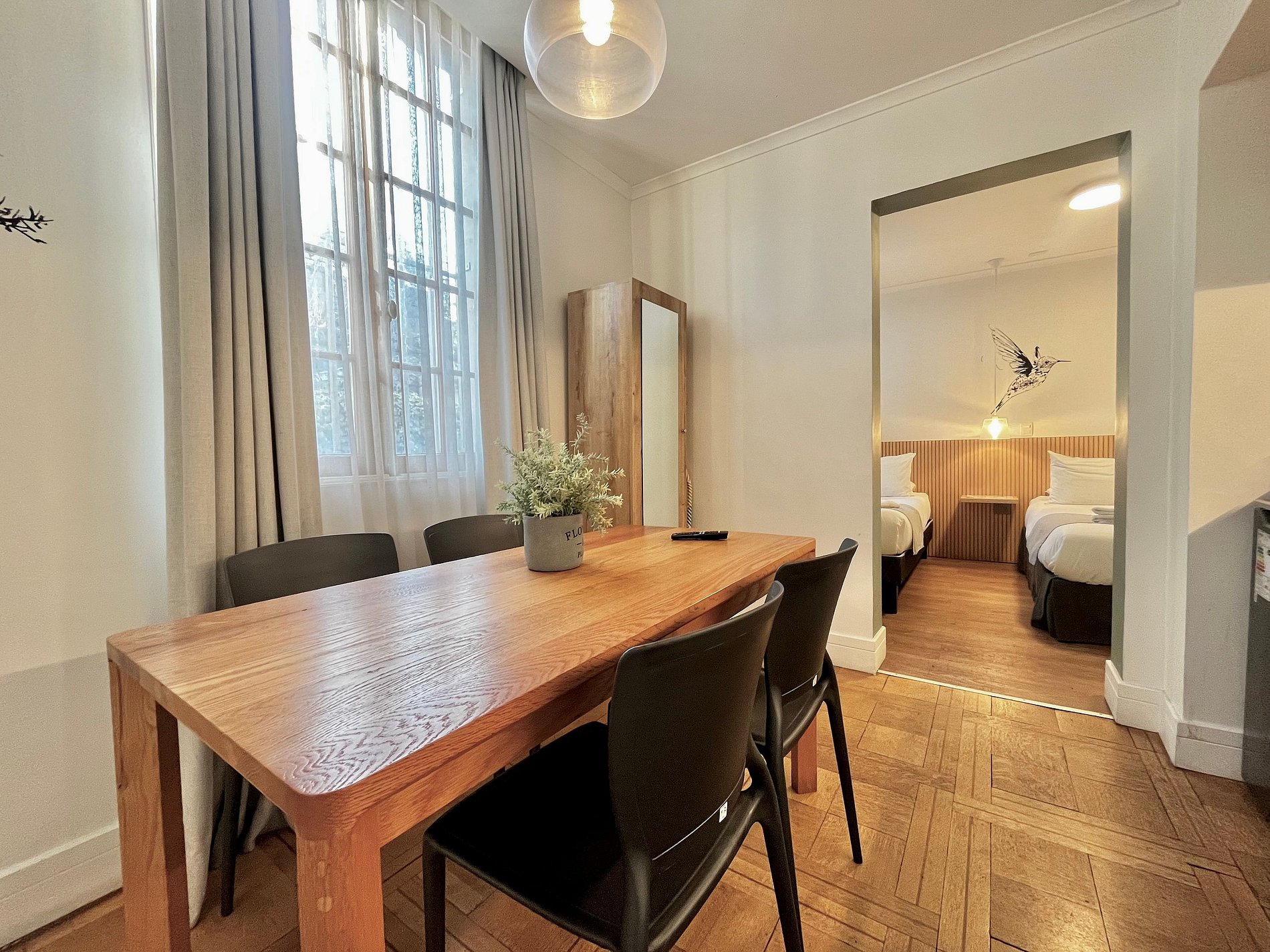 Me gustó la limpieza, el departamento contaba con cocina moderna y muy completa, era amplio, bien iluminado, en una casa antigua muy bien mantenida y remodelada. Tenía calefactor, muy buena seguridad. Linda vista, puertas y ventanas originales de la vivienda, lindas y funcionando perfecto. Excelente ubicación.