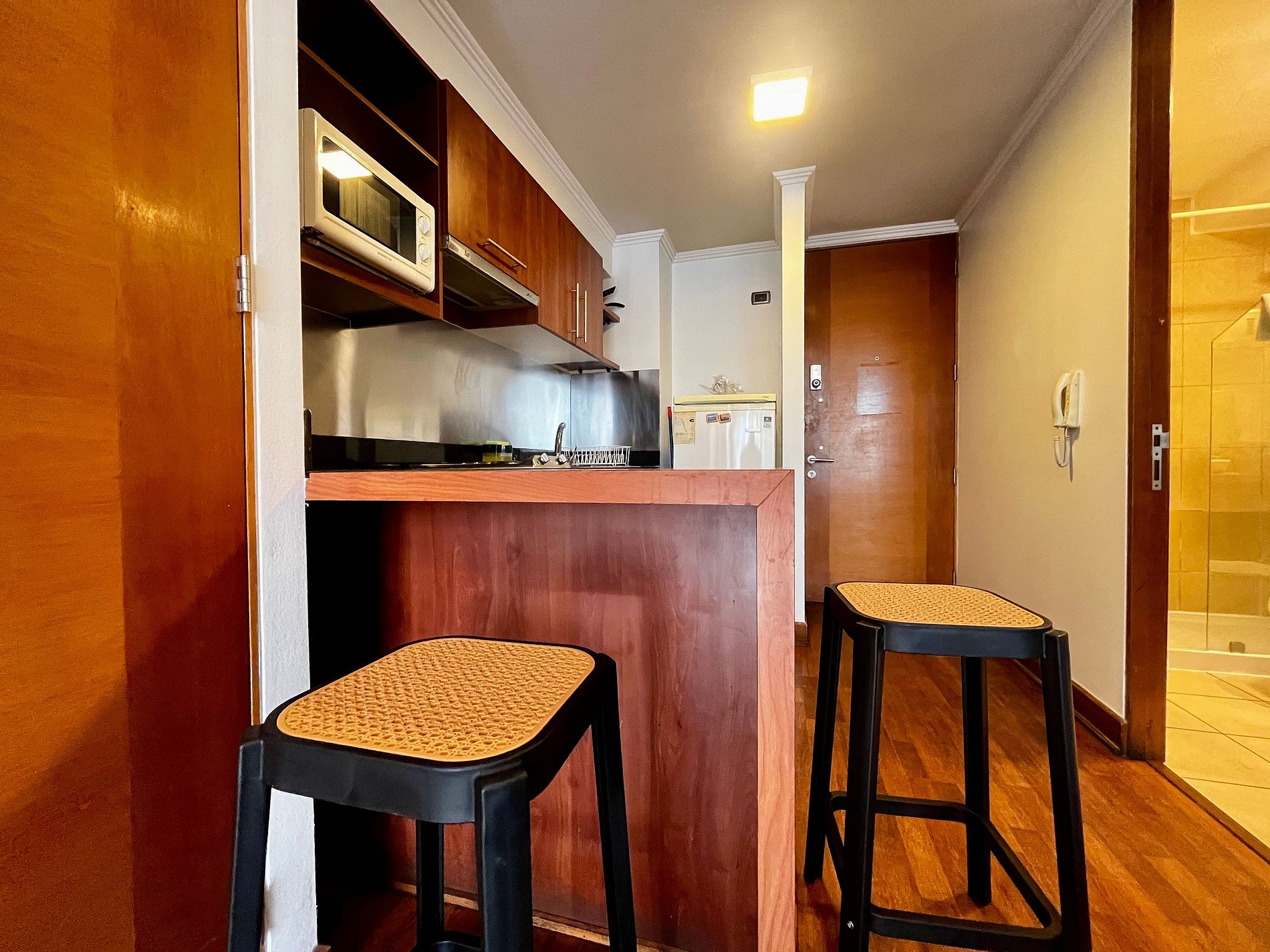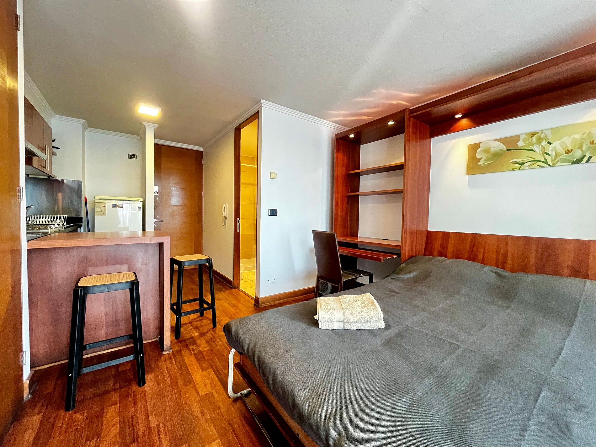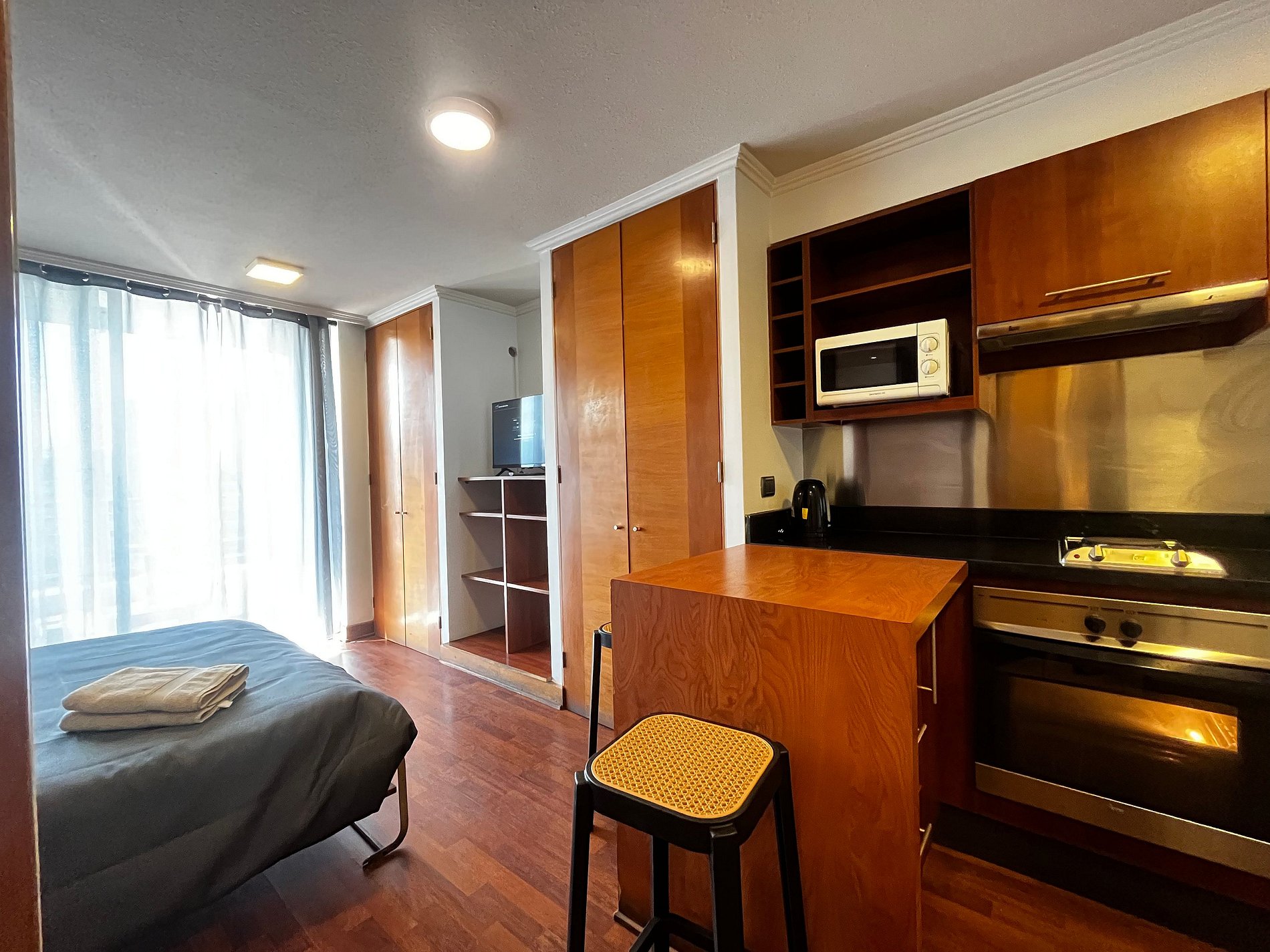 Rua Santa Beatriz e Avenida Providencia. Apartamento estúdio com uma cama de casal, um banheiro com chuveiro (sem banheira), cozinha compacta totalmente equipada e varanda. Wi-Fi gratuito . Ventilador, aquecedor elétrico, toalhas, ferro de passar roupa, secador de cabelo e roupa de cama estão incluídos.Estacionamento fechado e pago a dois quarteirões de distância, sujeito à disponibilidade.